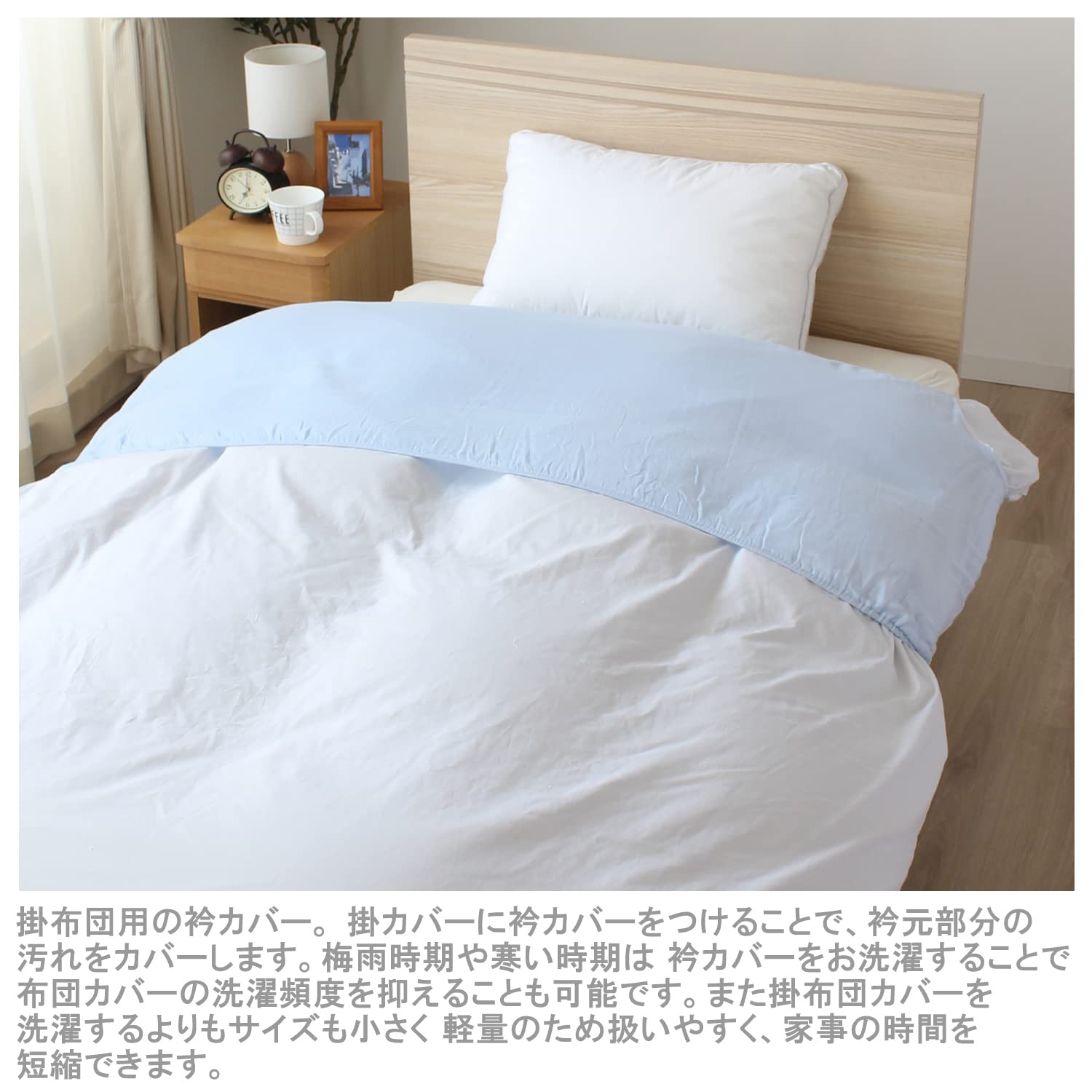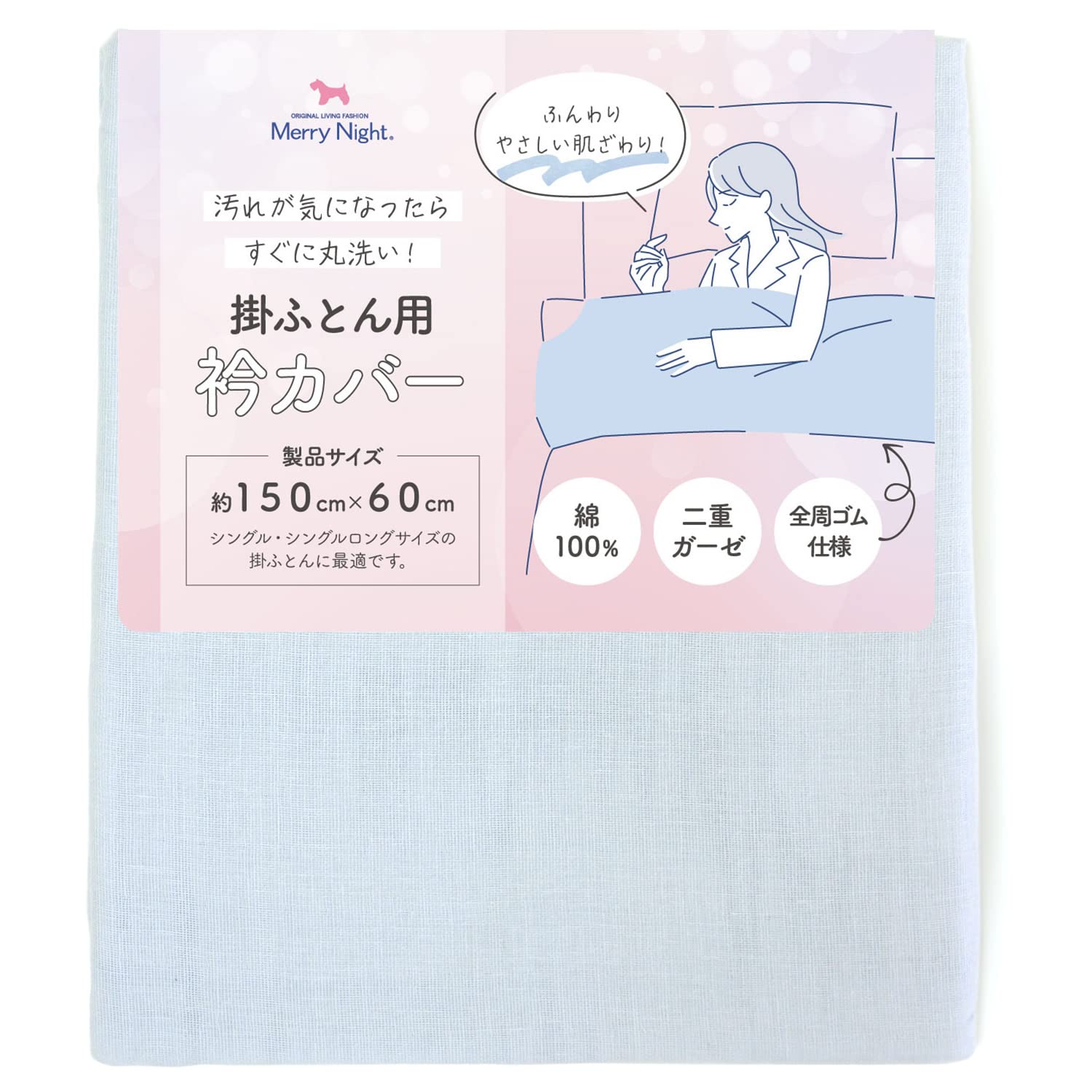 【在庫処分】メリーナイト(Merry Night) 衿カバー 2重ガーゼ ブルー 約150×60cm (シングル・シングルロングサイズの掛け布団に最適)全周ゴム仕様 綿100% ふんわりやさしい肌ざわり 洗える EK1521-76 | GIGATERA