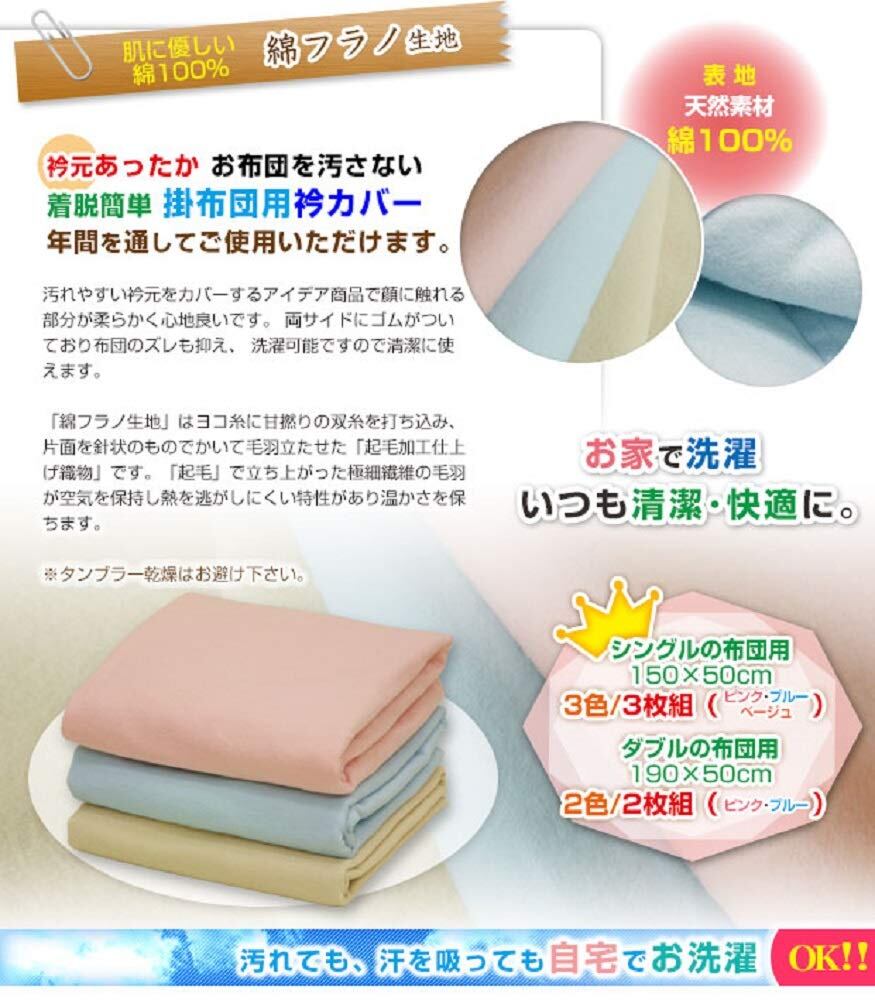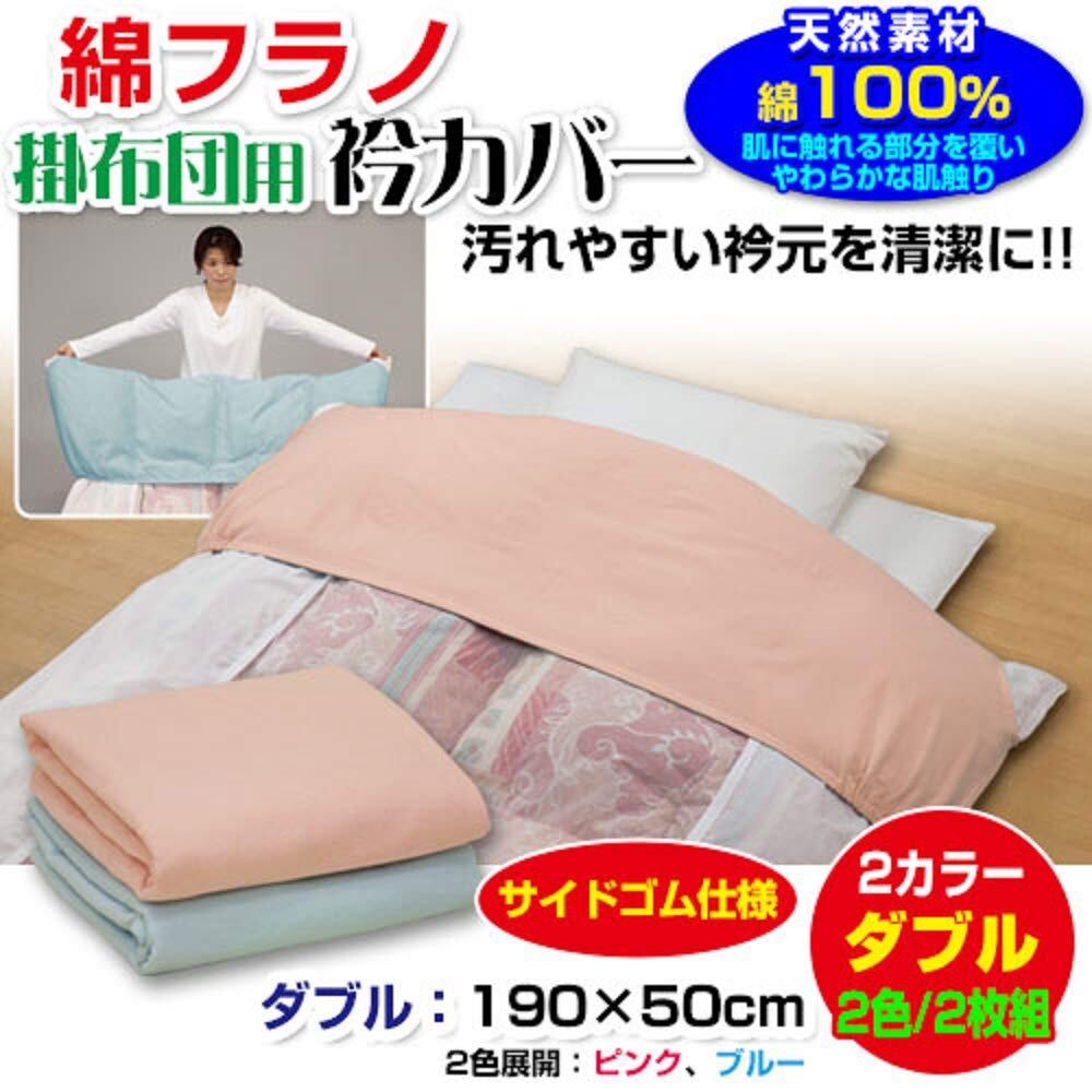衿カバー ダブル 襟カバー 掛け布団用 直販 あったか起毛 綿フラノ ダブル 190×50cm 綿100% サイドゴム付き (2色/2枚組)