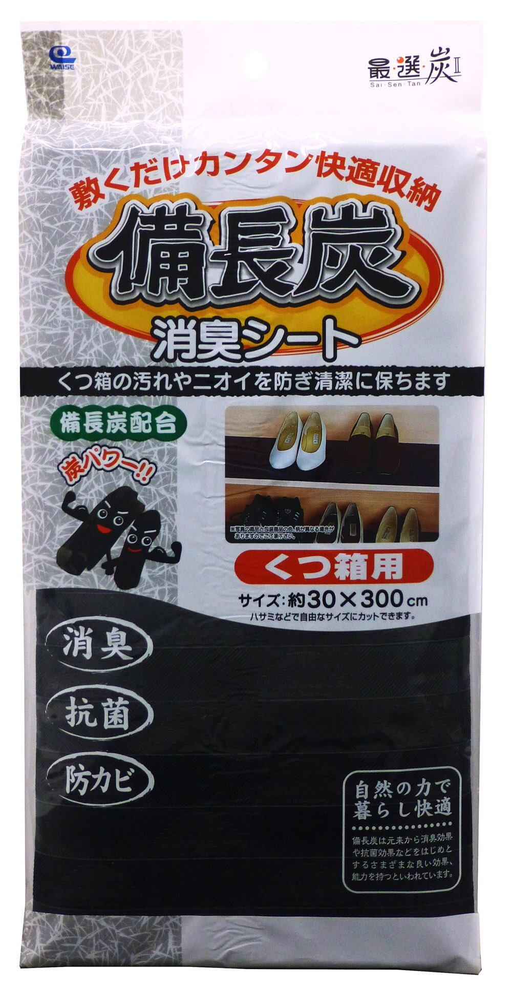 ワイズ(Waizu) 消臭シート 最選炭II備長炭シート くつ箱用 30×300㎝ 日本製 抗菌 防カビ 清潔 ズレない 防臭 下駄箱 引き出し マット 汚れ防止 収納 キッチン 台所 無臭 置くだけ シンク下 フリーカット SS-716
