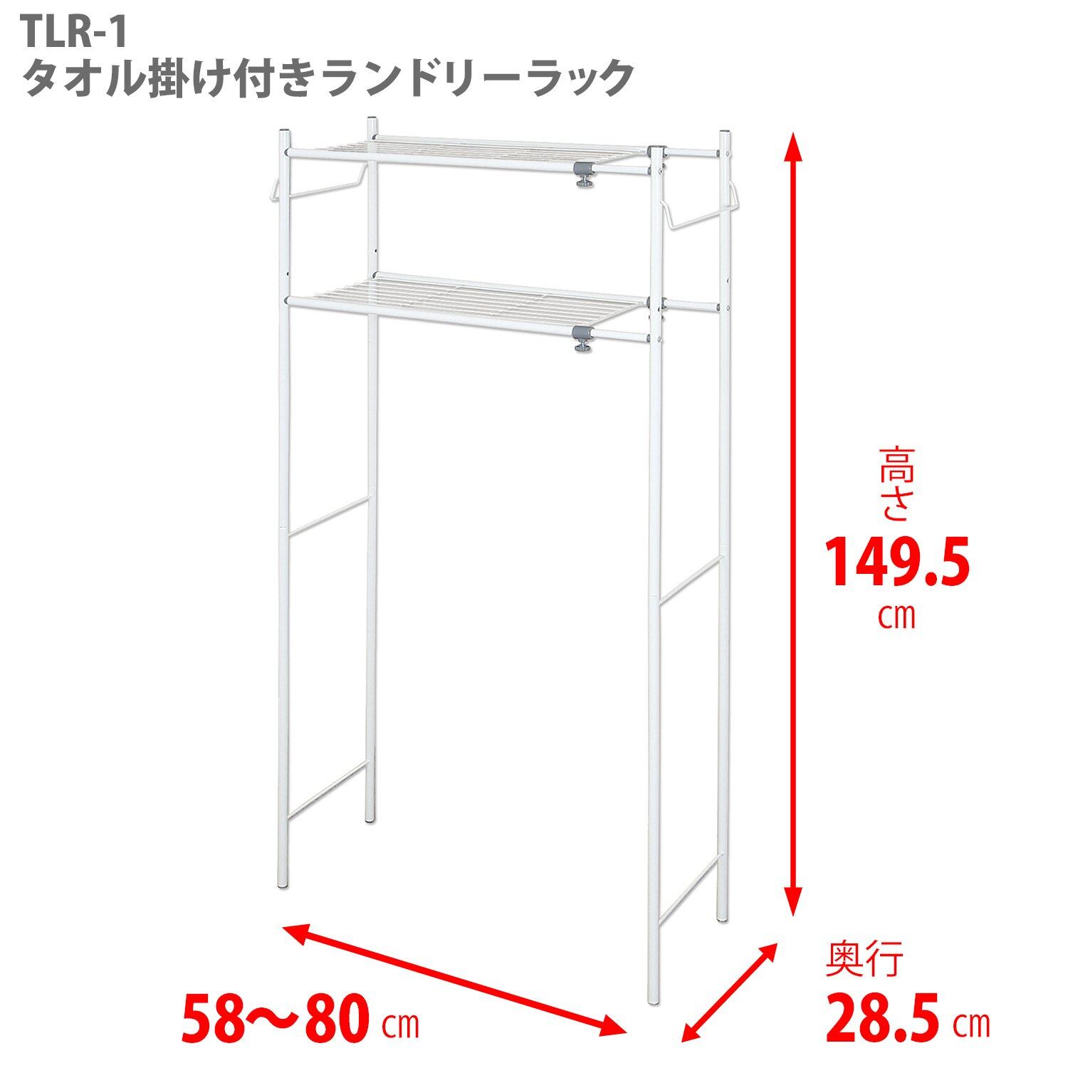 【特価】平安伸銅工業 HEIAN SHINDO ランドリーラック 棚2段 丸パイプ タオル掛け付き ホワイト 幅58-80×奥行28.5×高149.5cm TLR-1