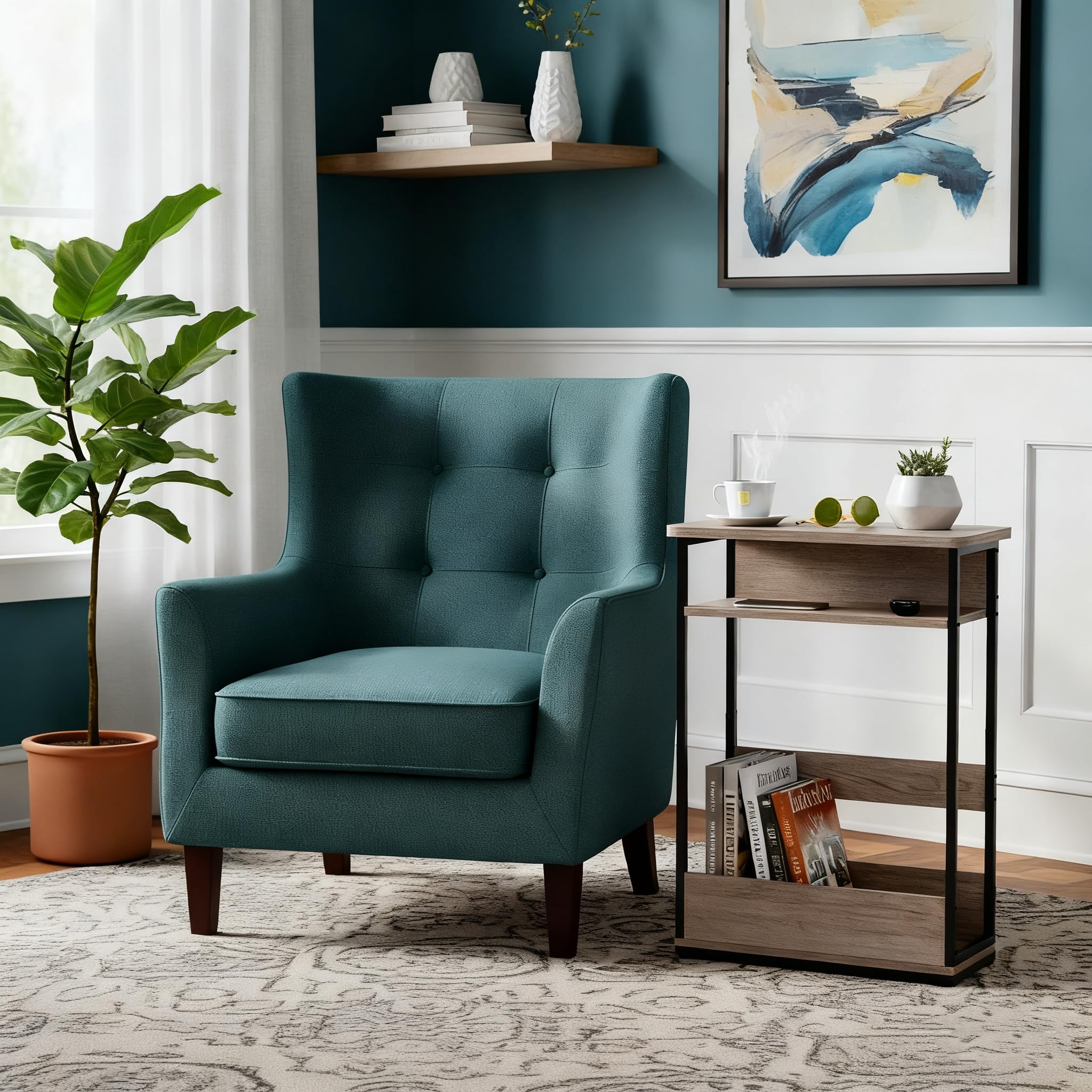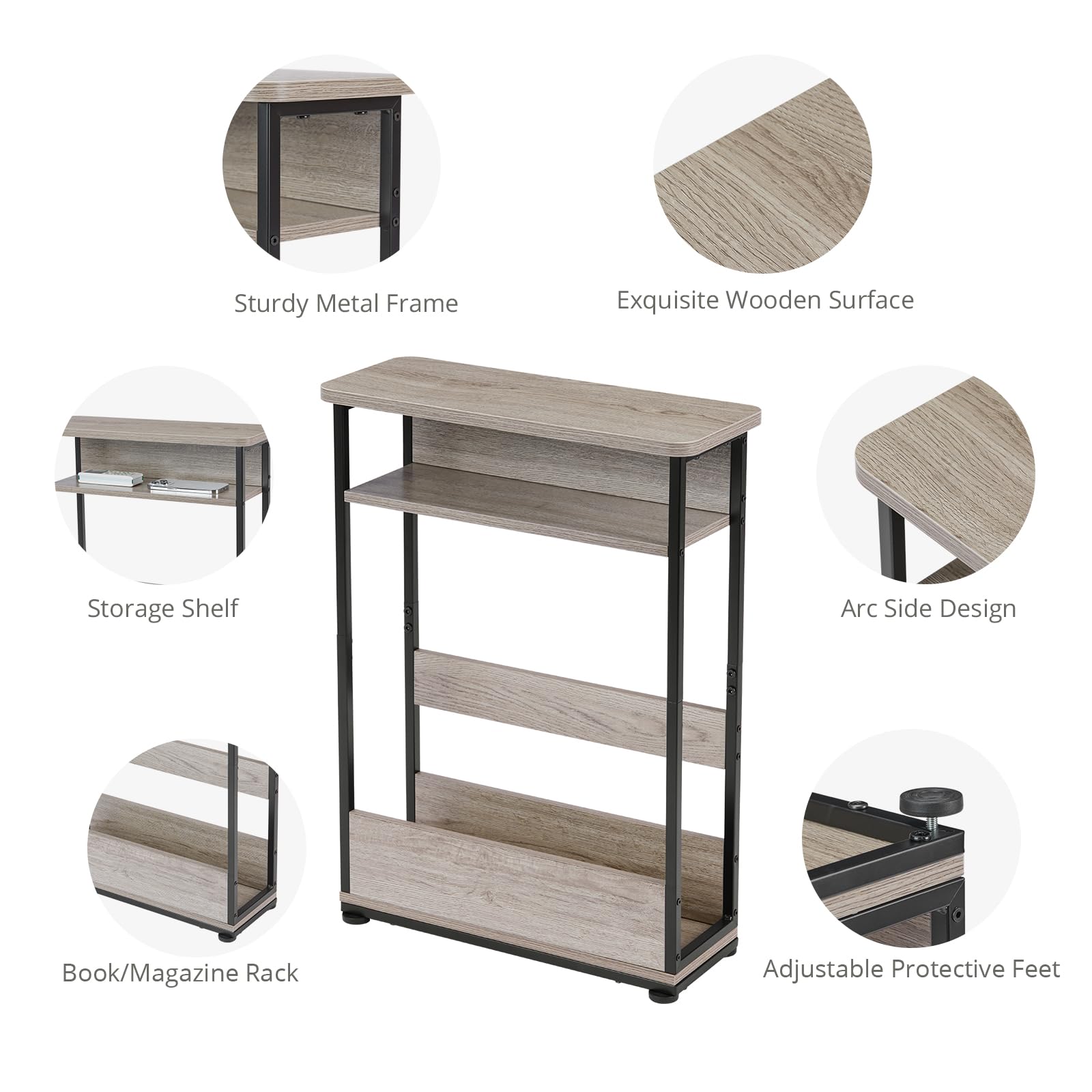 【調節可能なフットパッド】コンパクトな構造で、レトロなインダストリアルアクセントテーブルはソファサイドテーブルやナイトテーブルとして小さなリビングルームのスペースに最適です。この多目的テーブルは、調節可能なフットパッドを備えており、凹凸のある床面二も使用でき、床に傷がつくのを防ぎます。