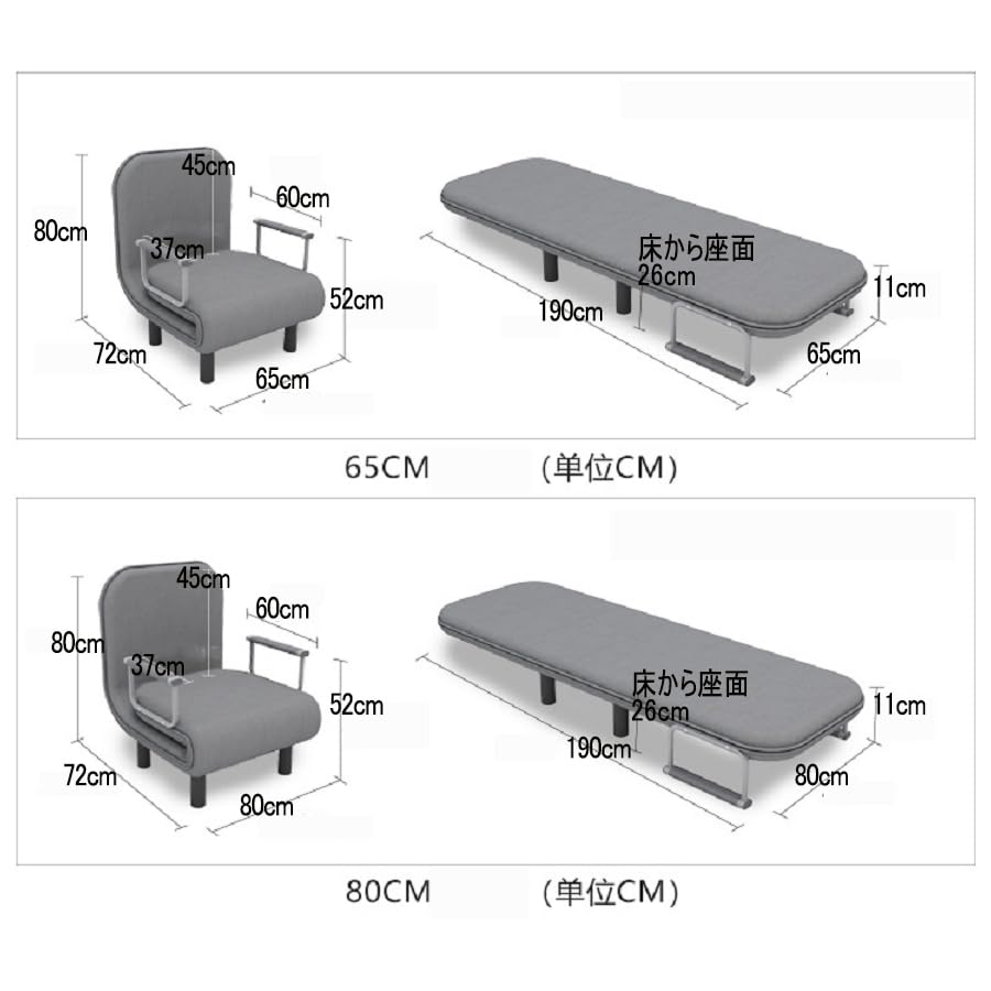 【ベッドソファー変換】:折りたたんでゆったりとくつろげます。調節可能な背もたれを使用すると、ソファから快適なベッドに数秒で切り替えることができるため、女性でも簡単に変更できます。