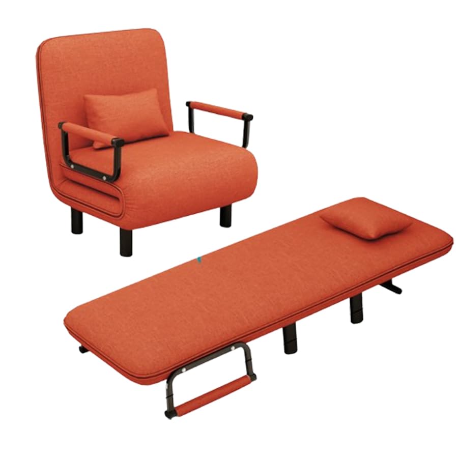 [ITACHENG] ソファーベッド 一人用 3WAY 折りたたみ式ソファベッド ソファー シート 折りたたみベッド シングル ひじ掛け 来客用 リクライニング ふかふかクッション付 省スペース (オレンジ,80*190cm)