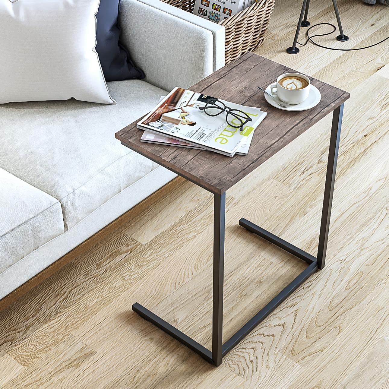 【幅広い用途】優しい風合いの木目調天然風とアイアンの現代風を合わせた落ち着いたダークブラウン調,リビングルームに置いてコーヒーを飲んでも、バルコニーや庭に置いて花などを並べても、環境と調和しています。ソファに差し込めるから、座りながらのティータイムも快適に過ごせる。リビングでソファーサイドテーブルとして、寝室でナイトサイドテーブルとして、書斎でデスクサイドテーブルとして、オフィスでコーヒーサイドテーブルとして、様々なシーンで活躍する多目的サイドテーブルです。