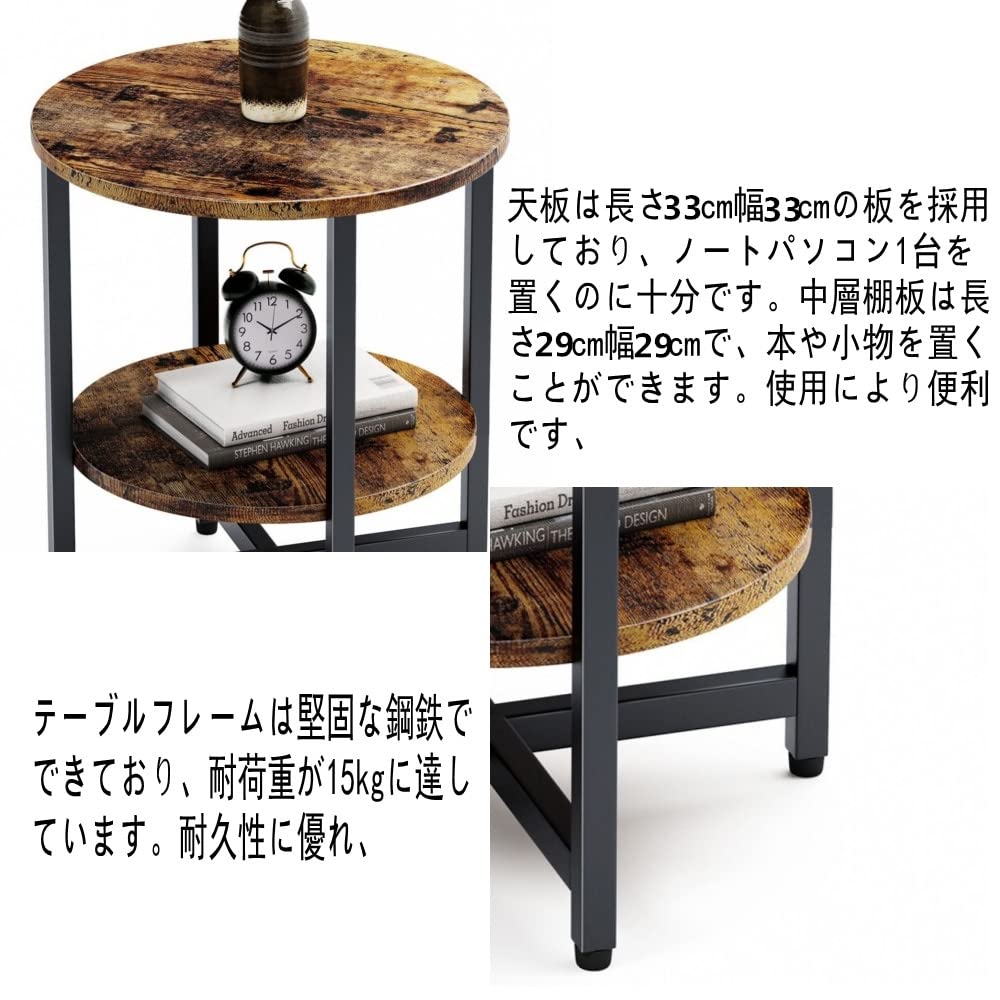 【人気】ZXD サイドテーブル コーヒー テーブル ベッド リビングサイドテーブル ソファ おりたたみ 幅33×奥行33×高さ40cm ビンテージ