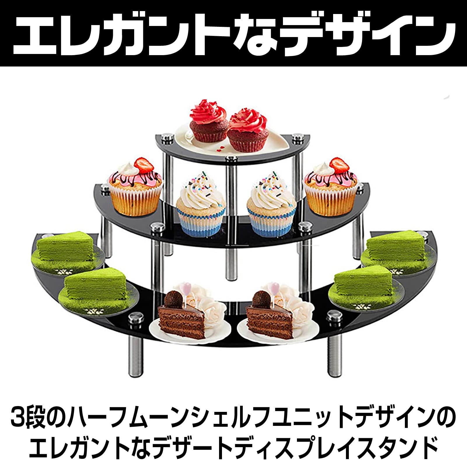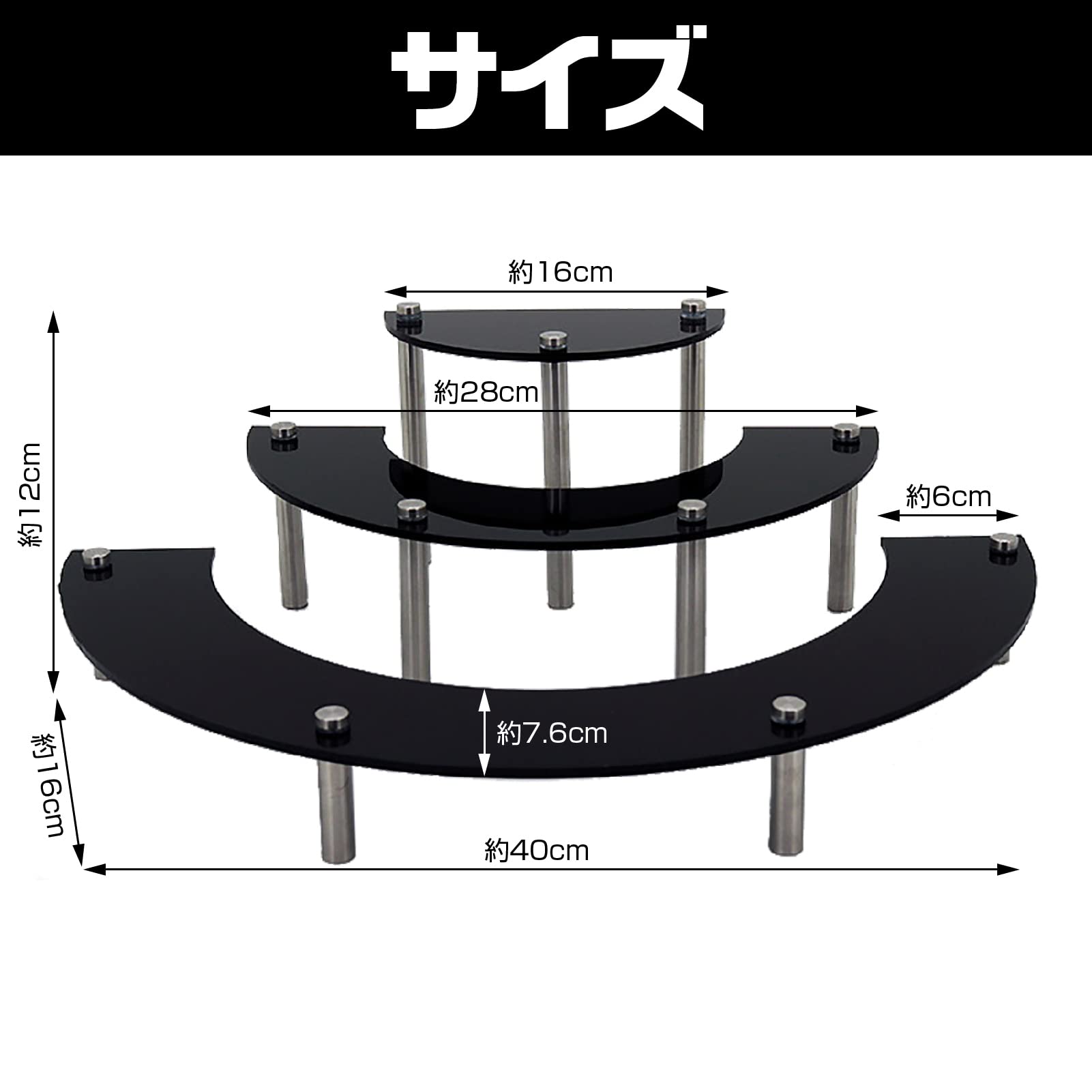 フィギュア ケース ディスプレイ ラック 透明 アクリル棚 ステージ 展示 階段 (黒色, 3段)