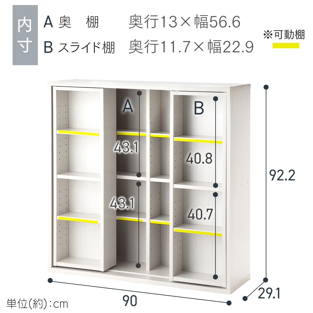 アイリスオーヤマ(IRIS OHYAMA) 本棚 大容量 棚 収納棚 ラック スリム おしゃれ おもちゃ スライド 収納 幅約90×奥行約29.2×高さ約92.2cm スライド棚 オープンラック 組立品 ホワイト ダブル CSD-9090