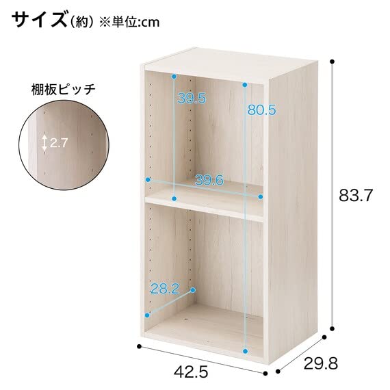 ニトリ(NITORI) 簡単組立て Nクリック ボックス レギュラー 2段 ホワイトウォッシュ 幅42.5×奥行29.8×高さ83.7cm 8791502