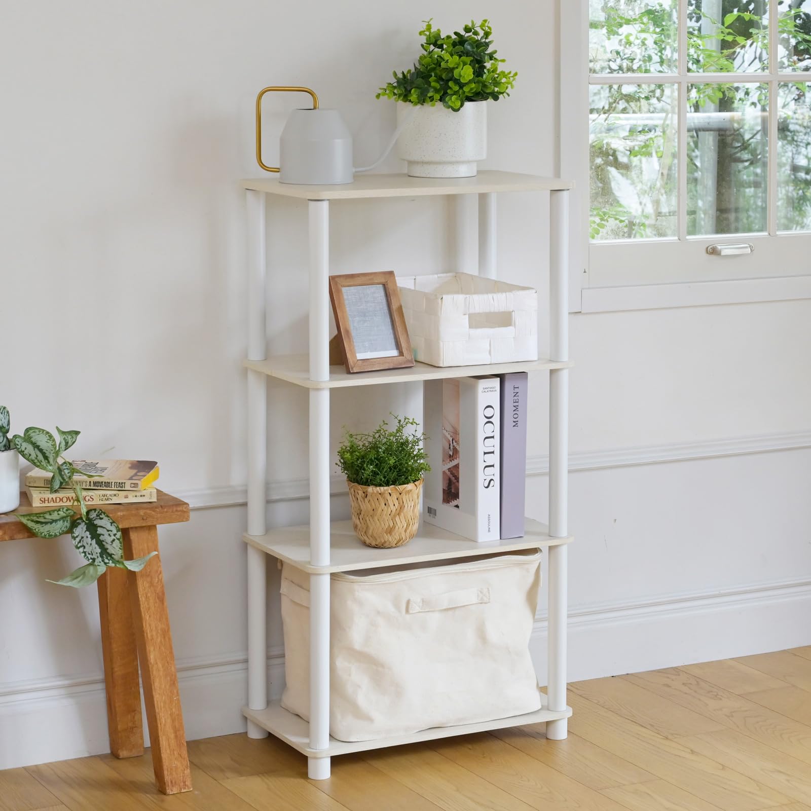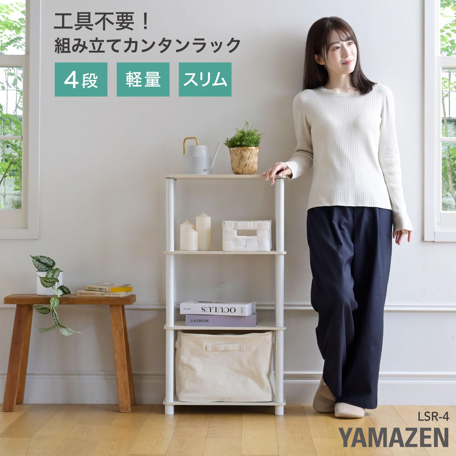 山善(YAMAZEN) ラック 4段 棚 組立カンタン 軽量 オープンラック シェルフ 収納棚 一人暮らし 幅47×奥行27×高さ92cm 組立品 ホワイトウォッシュ3/ホワイト LSR-4(WW3/WH)