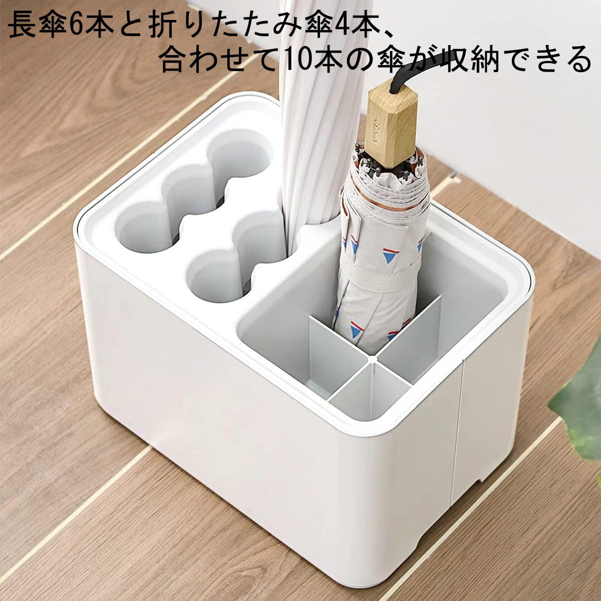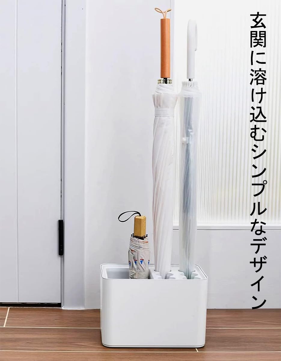 傘立て 10本挿し アンブレラスタンド 傘入れ 傘収納 水受け皿着脱可能 コンパクト 玄関収納 屋内用 (ホワイト)