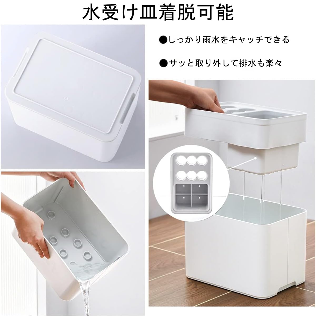【水受け皿着脱可能】取り外し可能な水受け皿だから、しっかり雨水をキャッチできるし、サッと取り外して排水も楽々です。