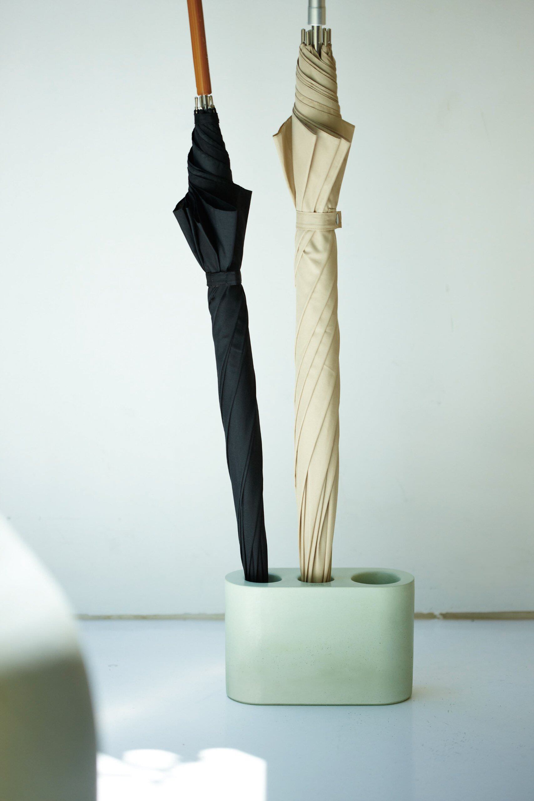 吸水性の高い自然素材、珪藻土(けいそうど)でつくられた傘立てです。