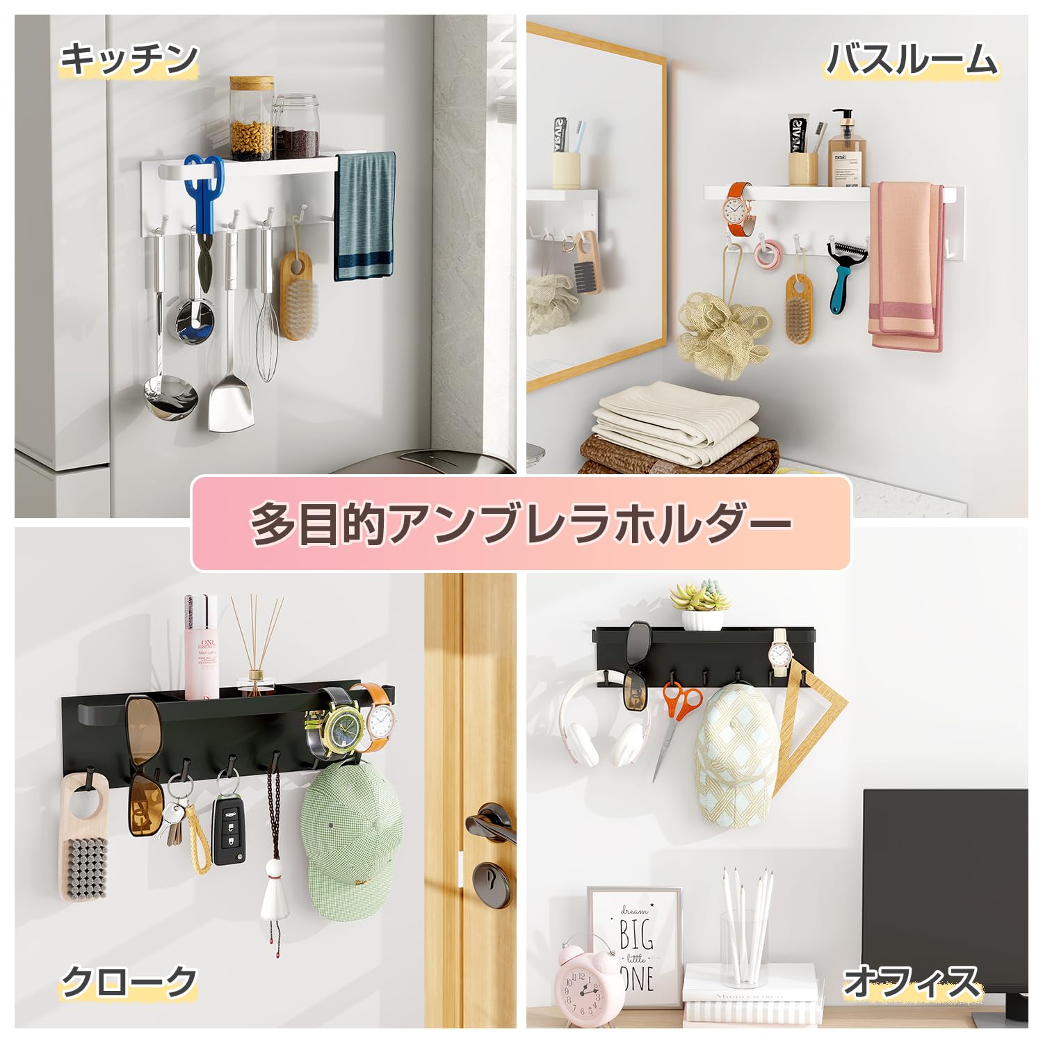 【頑丈で耐久性のあるデザイン】この傘立ては小型でコンパクトなデザインで、サイズは34cmx6.5cmx9.5cm、最大耐荷重は4.5KGで、滑らかな高品質の炭素鋼金属で作られています。バリがなく、頑丈で耐久性があり、防水性があります。木製のキーホルダーと比べて、割れたり曲がったりすることがなく、より頑丈で実用的です。