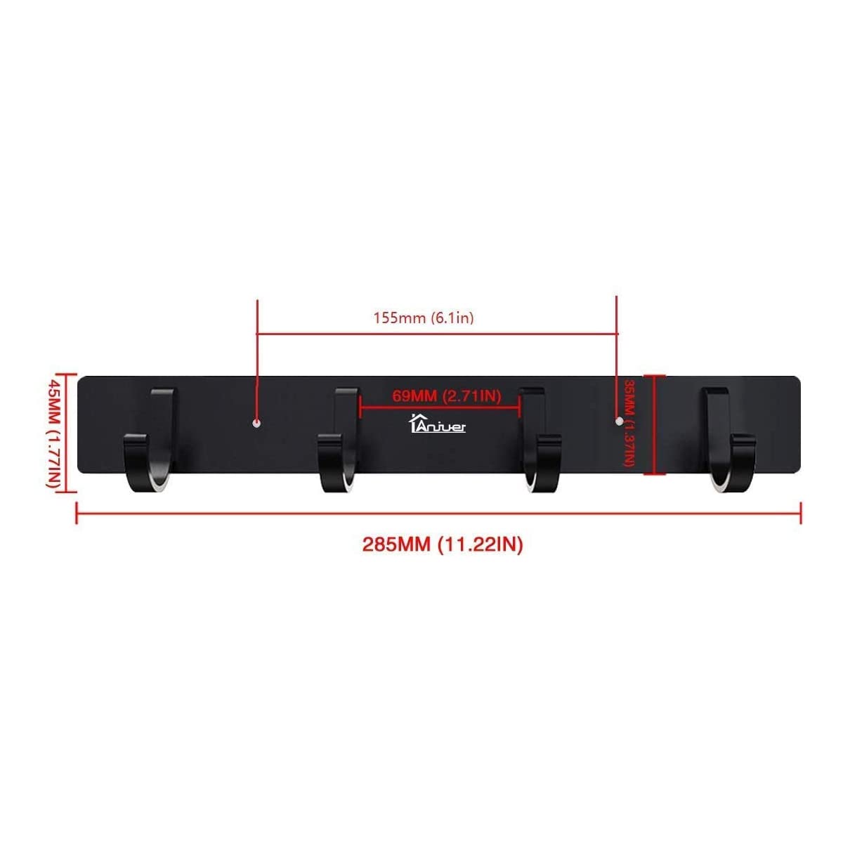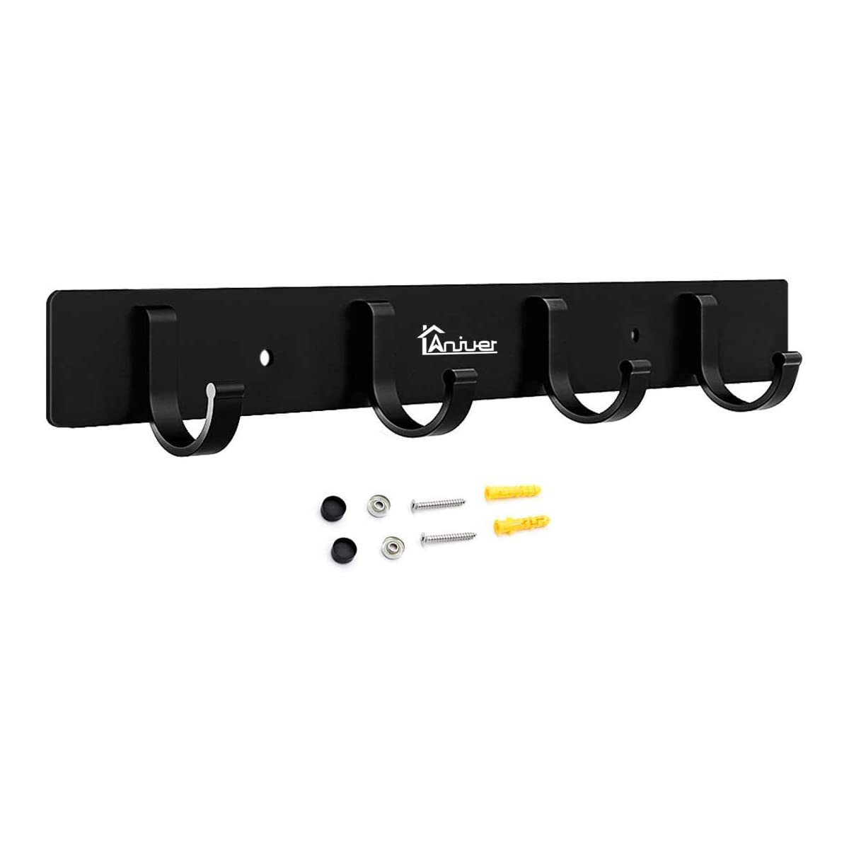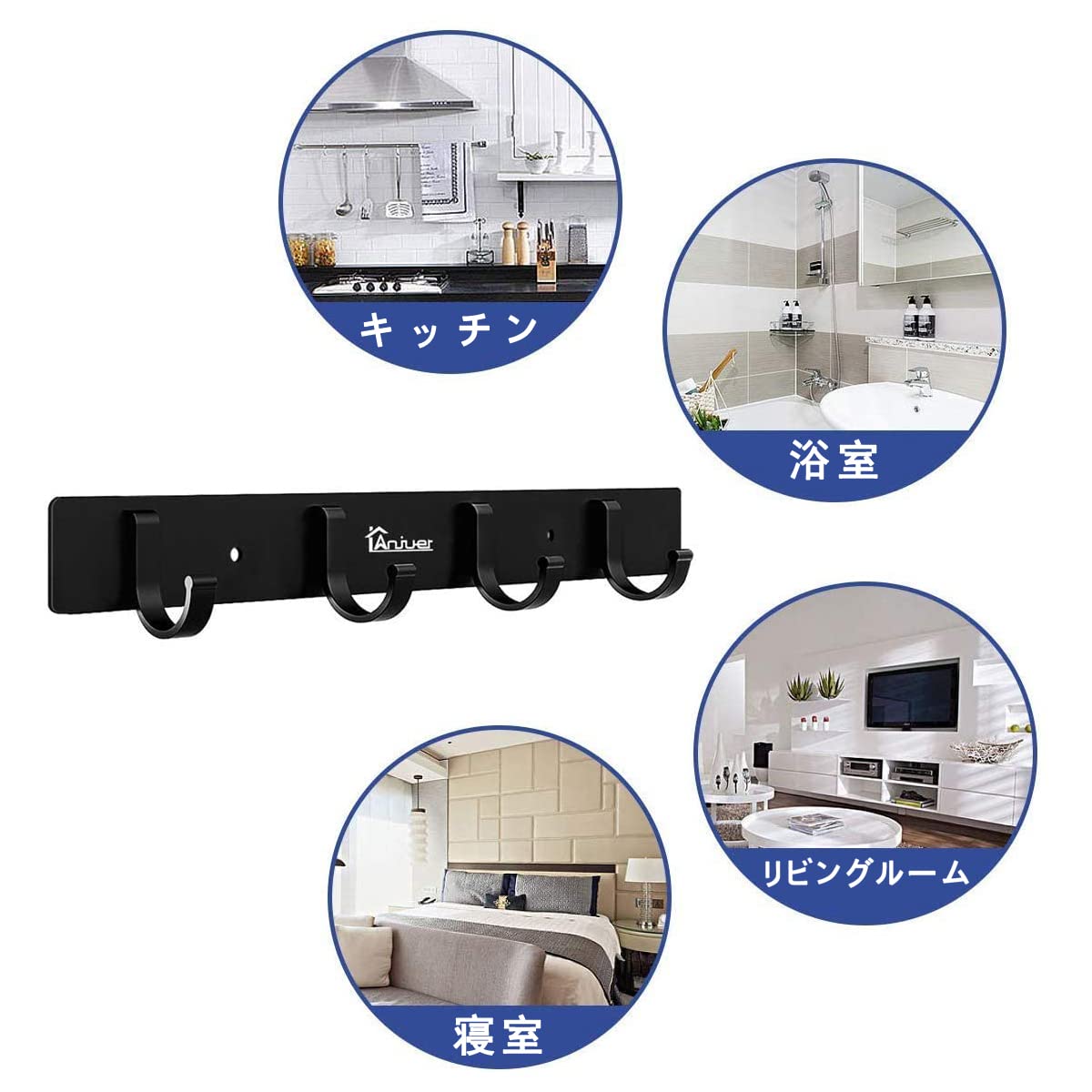 Anjuer 壁掛けフック 4連ウォールハンガー 収納フック 帽子掛け 洋服掛け コート掛け アルミニウム合金製 ブラック
