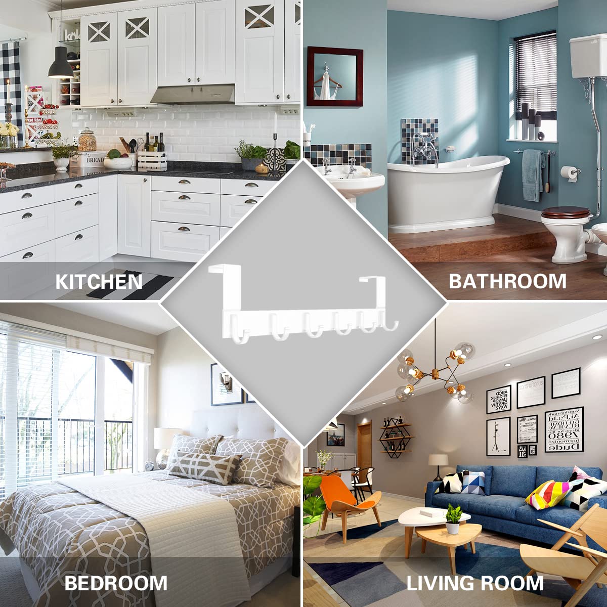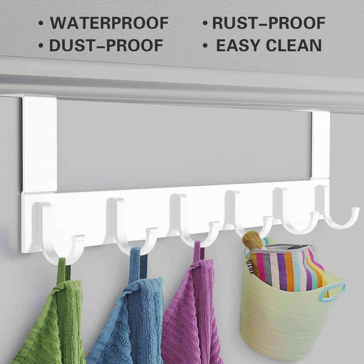 ドアハンガー 扉フック ドア掛けフック 6連フック(方型) ウォールハンガー 収納フック 帽子掛け 洋服掛け コート掛け 寝室 浴室 オフィス ベランダ 物干し 省スペース アルミニウム合金製 ホワイト