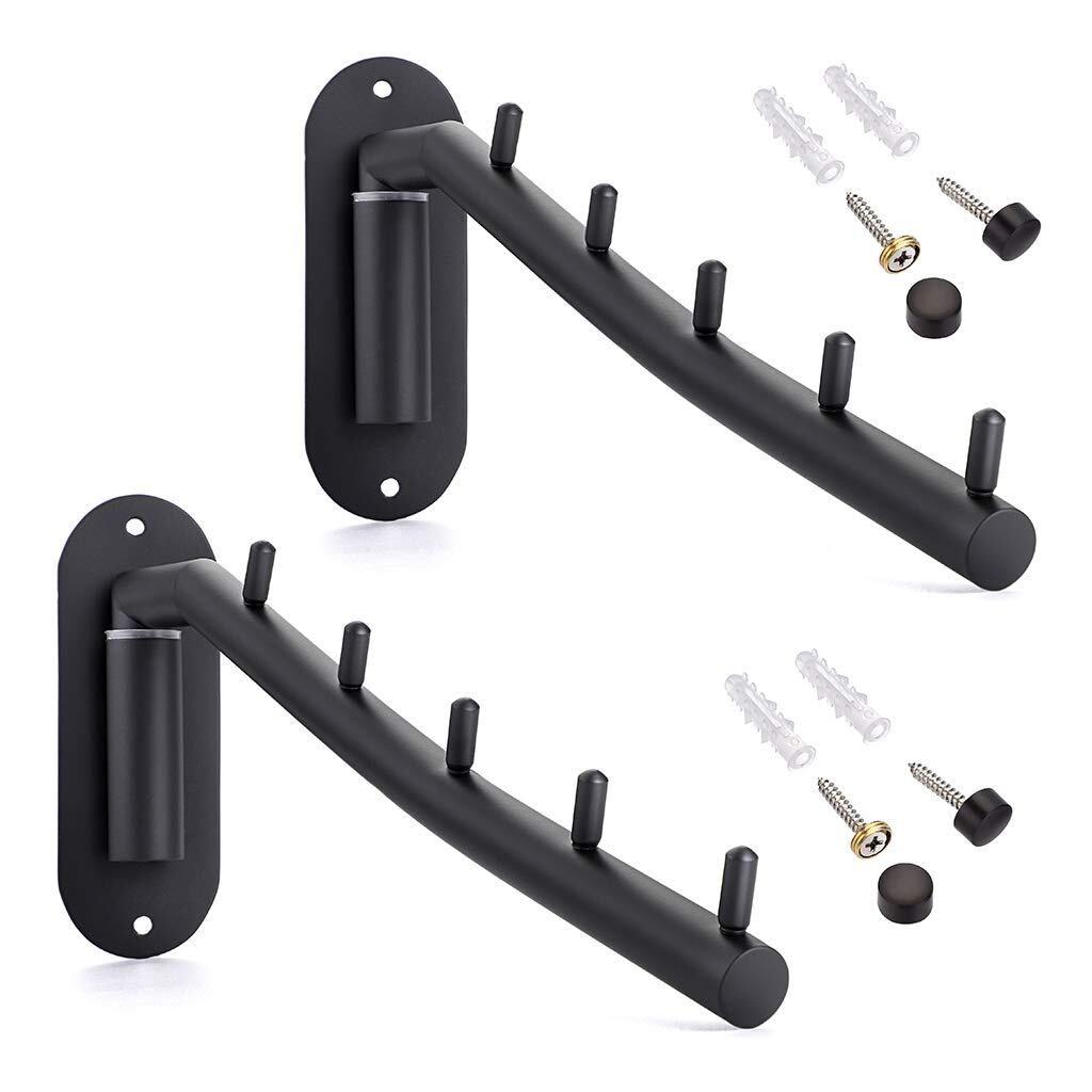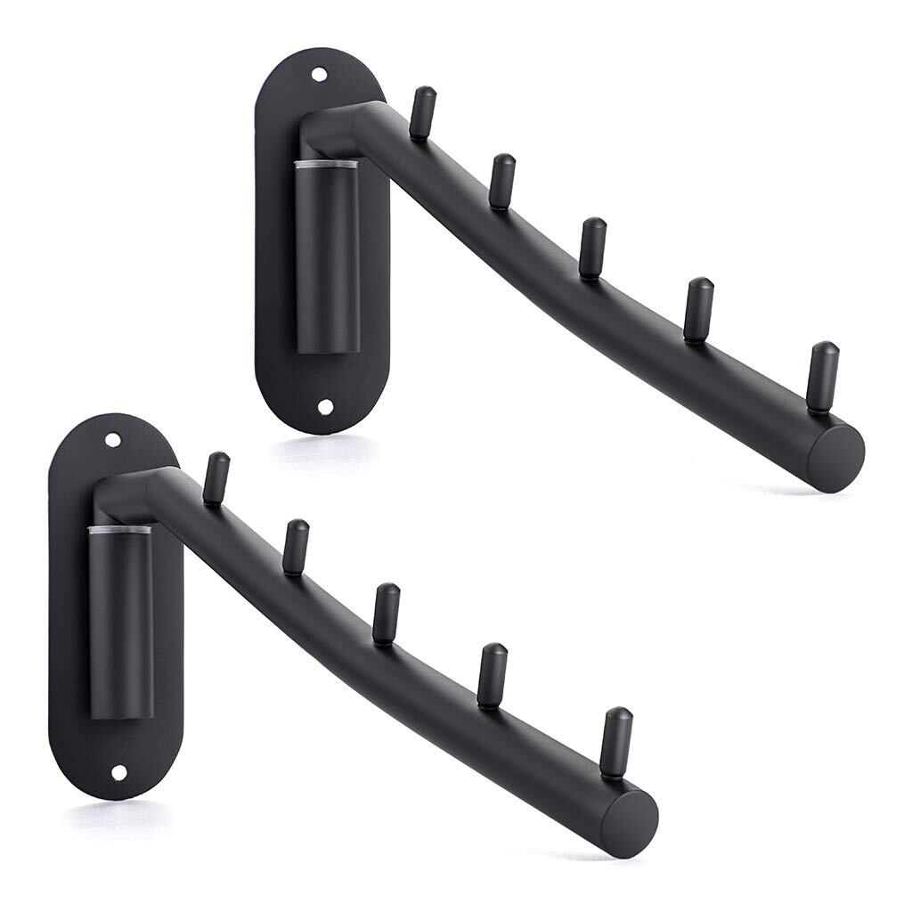 【人気】Sumnacon 折り畳み 壁掛けハンガーラック ウォールハンガー 壁掛けフック 5連 ステンレス 180度 角度調整可能 省スペース トイレ キッチン 寝室 屋外 ブラック(2個セット) | GIGATERA