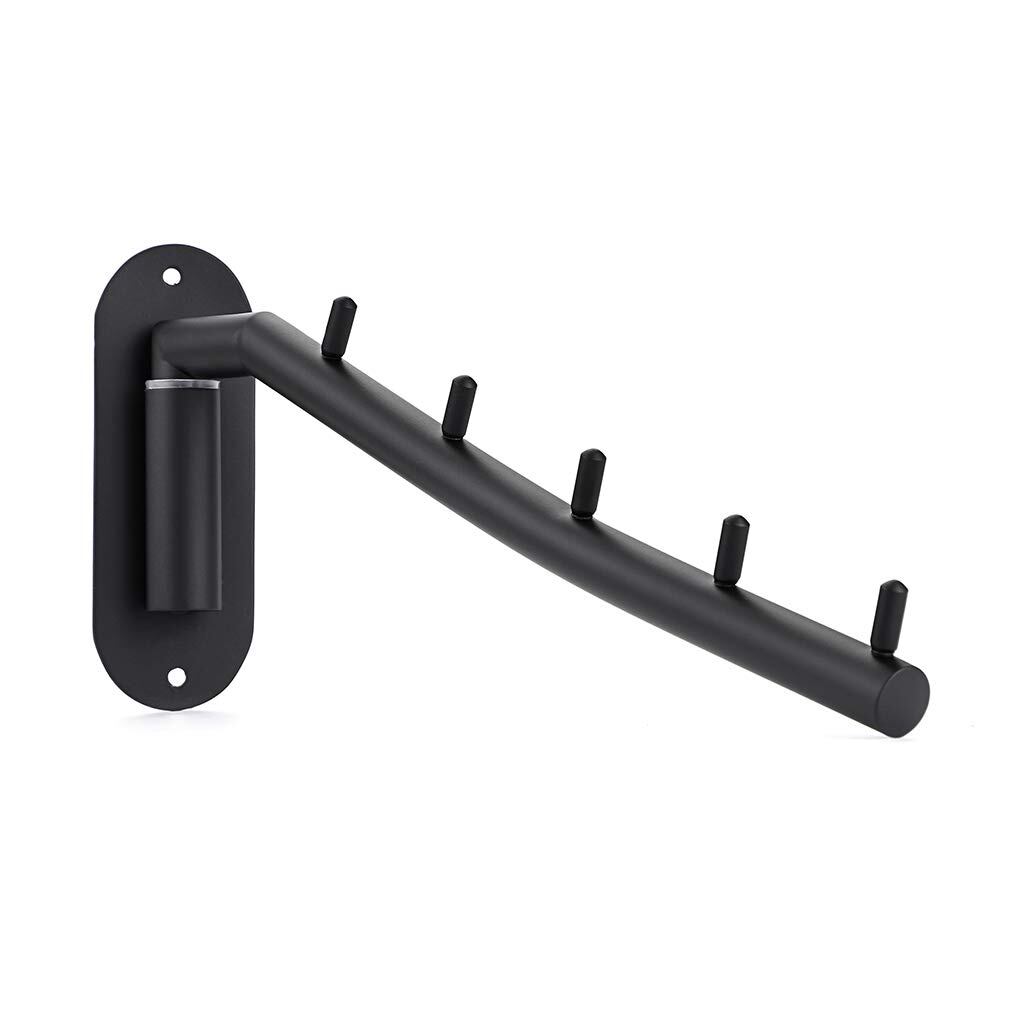 Sumnacon 折り畳み 壁掛けハンガーラック ウォールハンガー 壁掛けフック 5連 ステンレス 180度 角度調整可能 省スペース トイレ キッチン 寝室 屋外 ブラック(1個セット)