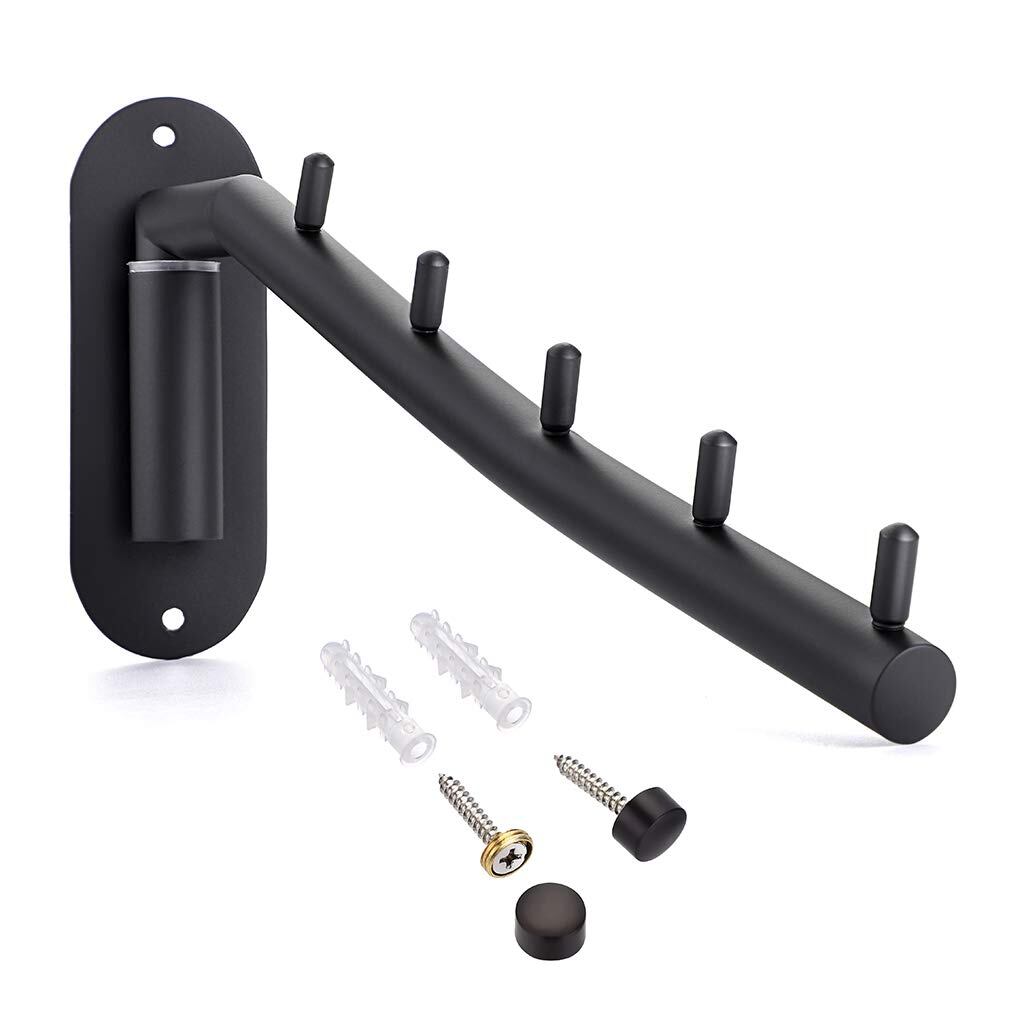 【セール】Sumnacon 折り畳み 壁掛けハンガーラック ウォールハンガー 壁掛けフック 5連 ステンレス 180度 角度調整可能 省スペース トイレ キッチン 寝室 屋外 ブラック(1個セット)