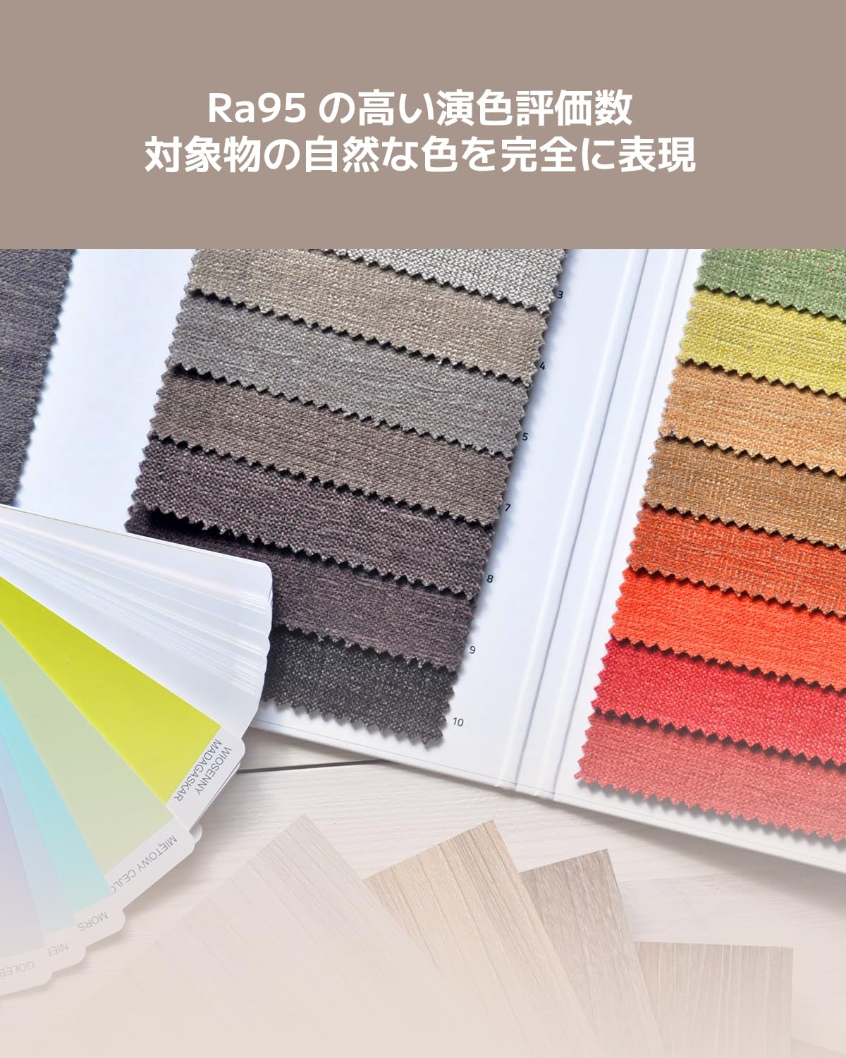 【Ra95の高い演色評価数】演色評価数は最高Ra95*に達し、本来の自然な色とディテールをしっかりと映します。フリッカーフリーで、長時間の使用による目の疲れを軽減します。