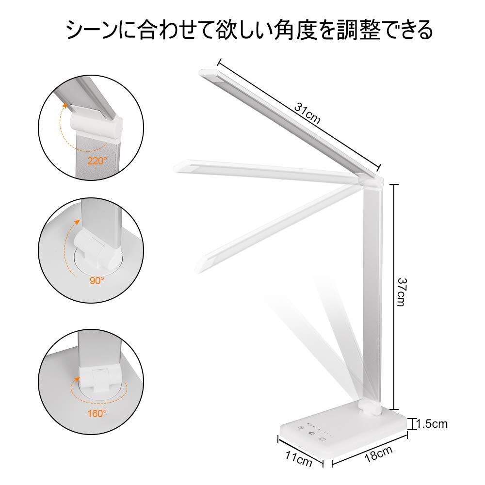 デスクライト 多角度調整可能 タッチセンサー5段階調光5段階調色500ルーメン (シルバー)