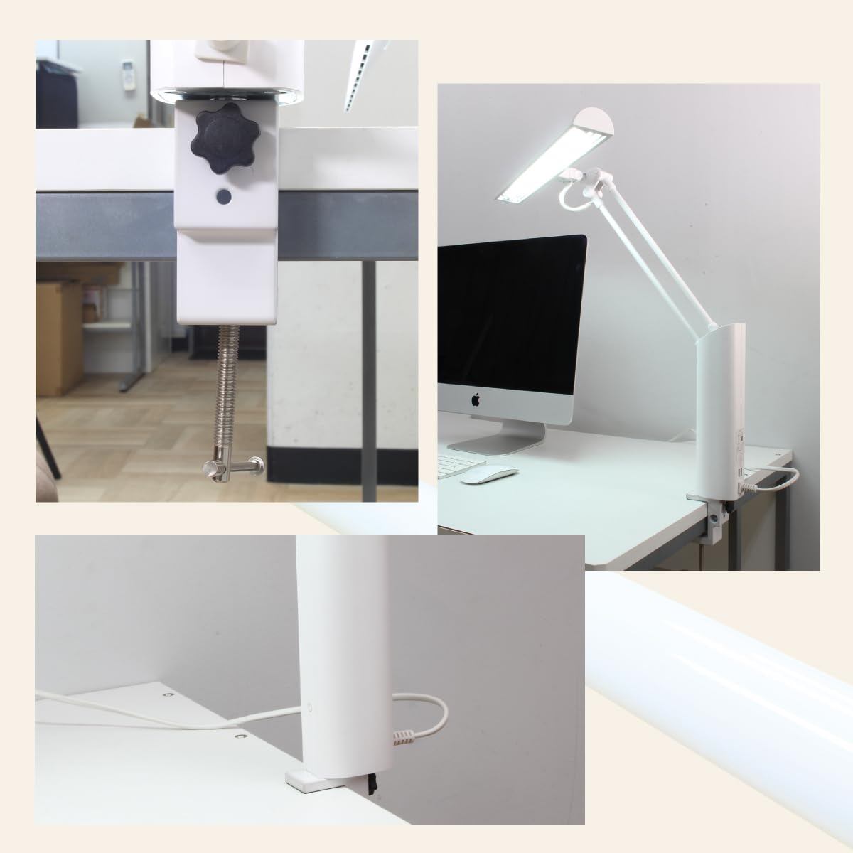 クランプ、ベースのどちらでの設置できます。本体背面にUSBソケット2穴付き(1口使用時はMax 5V/2.1A、2口併用時は各Max 5V/1.5A)※ベース固定用ネジは本クランプ、ベースのどちらでの設置できます。本体背面にUSBソケット2穴付き(1口使用時はMax 5V/2.1A、2口併用時は各Max 5V/1.5A)※ベース固定用ネジは本体にセットしてあります。一度外してからベースをセットし、取り付けて下さい。体にセットしてあります。一度外してからベースをセットし、取り付けて下さい。