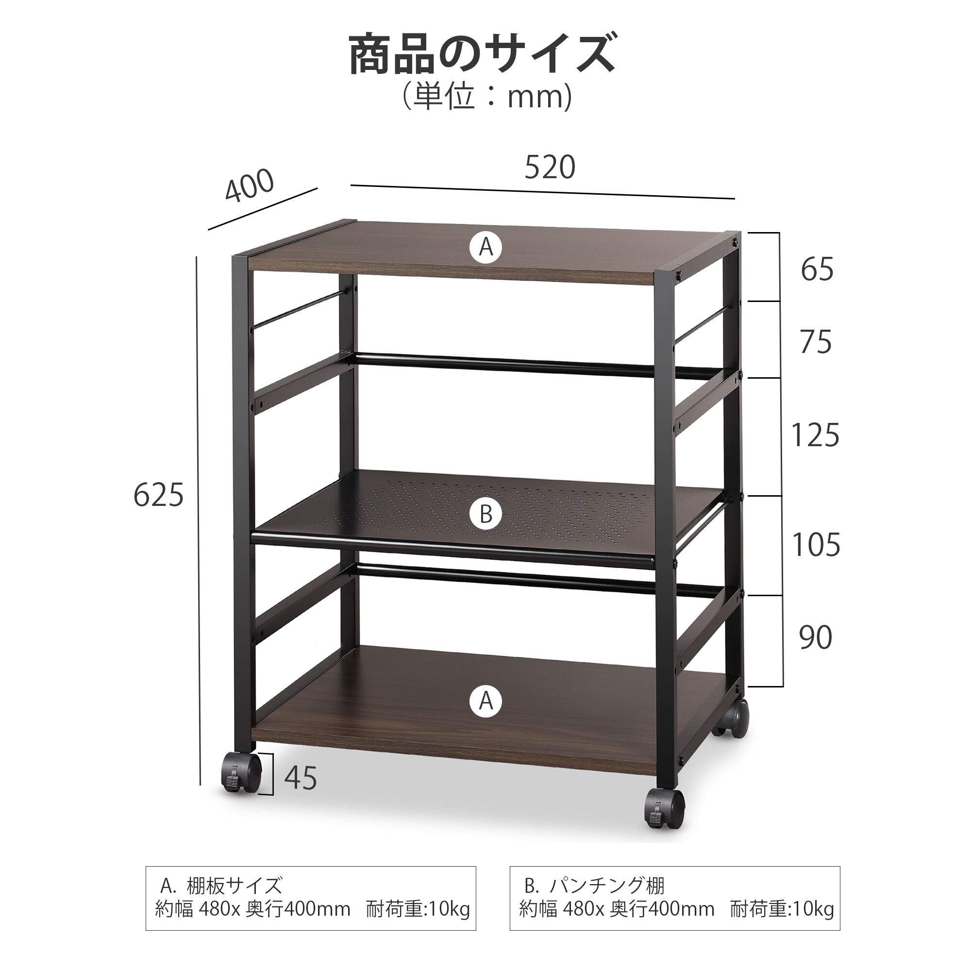 【特価】DEVAISE プリンター台 キャスター付き サイドワゴン デスクワゴン プリンターラック デスク下収納 移動便利 幅52 奥行40 高さ63cm デスク下 収納 棚 木製 袖机 スリム オフィスワゴン デスク ワゴン ブラウン