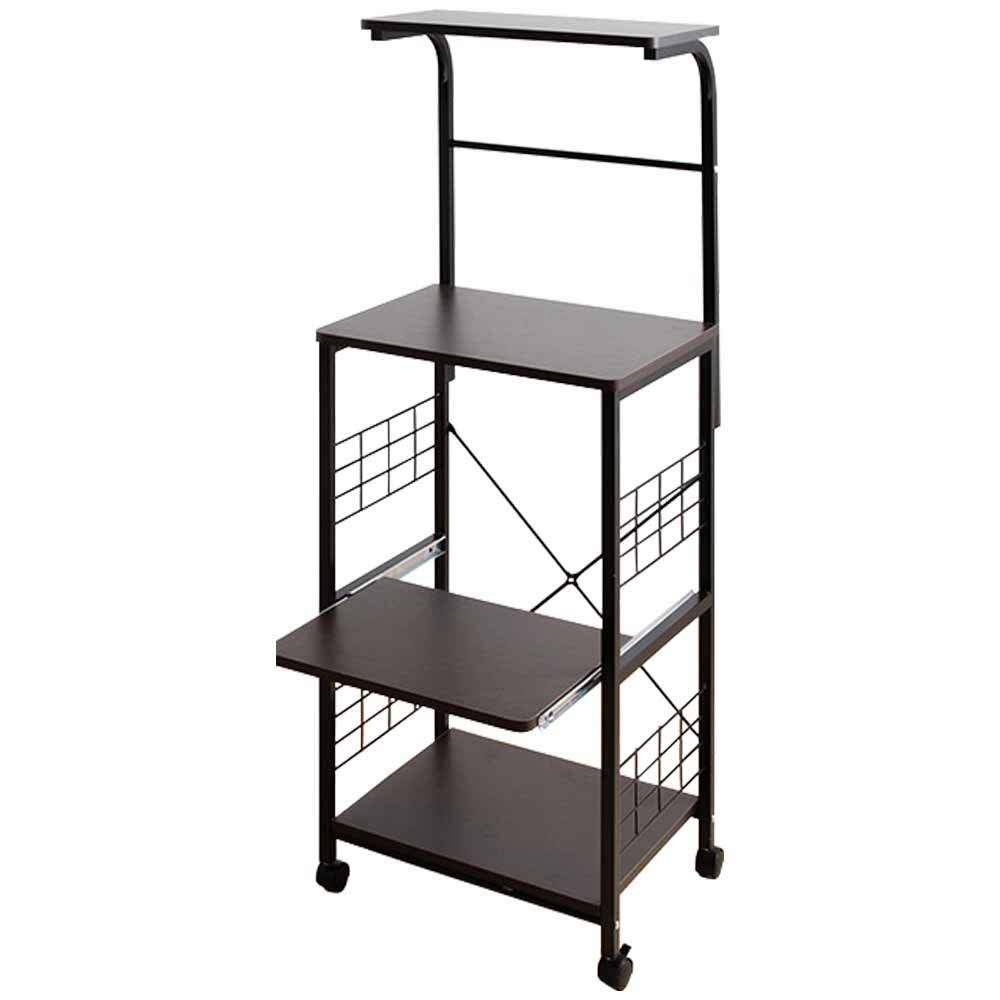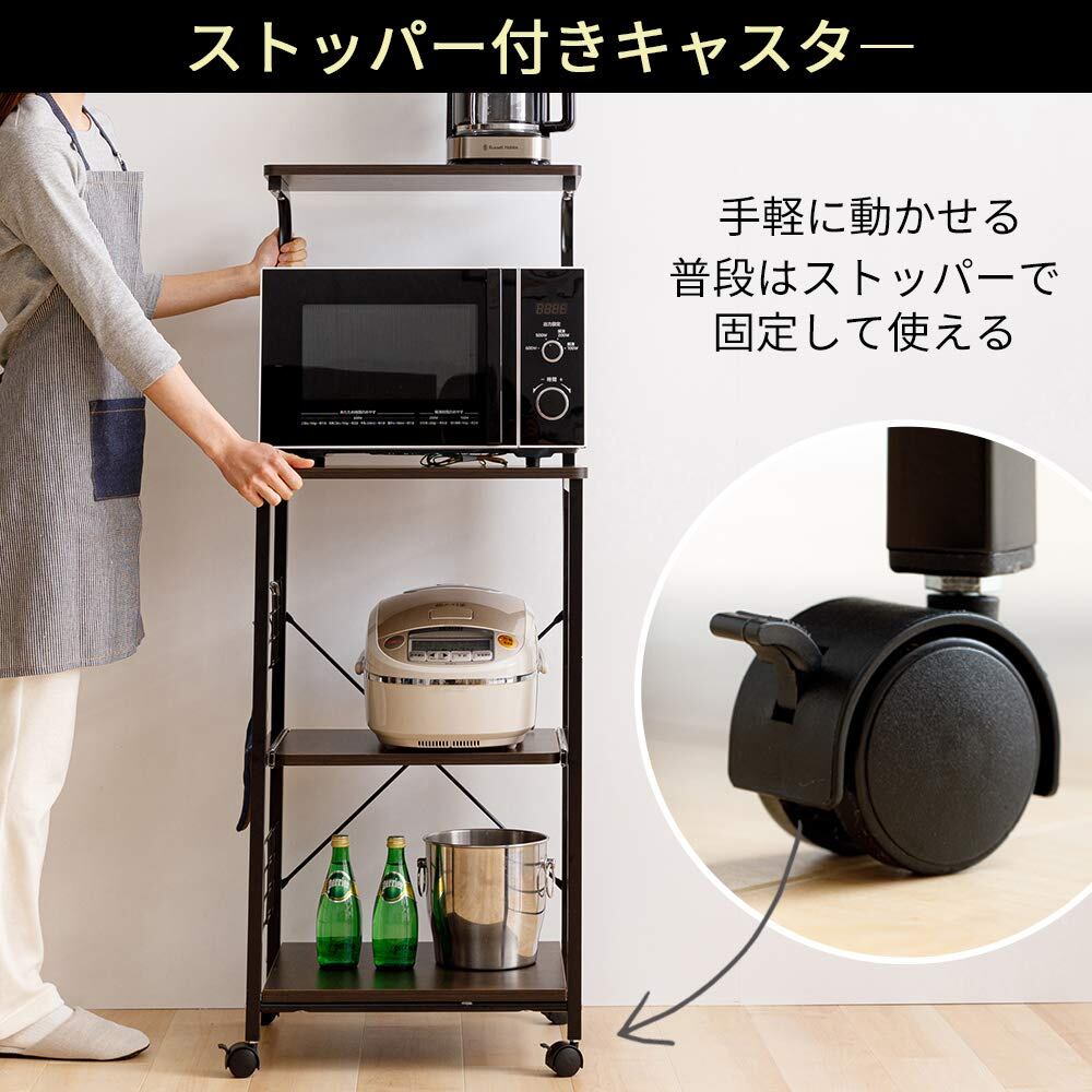 アイリスプラザ レンジ台 幅50 レンジラック 幅50×奥行43×高さ130cm コンパクト スライド棚 ストッパー付きキャスター 組立品 ブラウン RGK-49BN