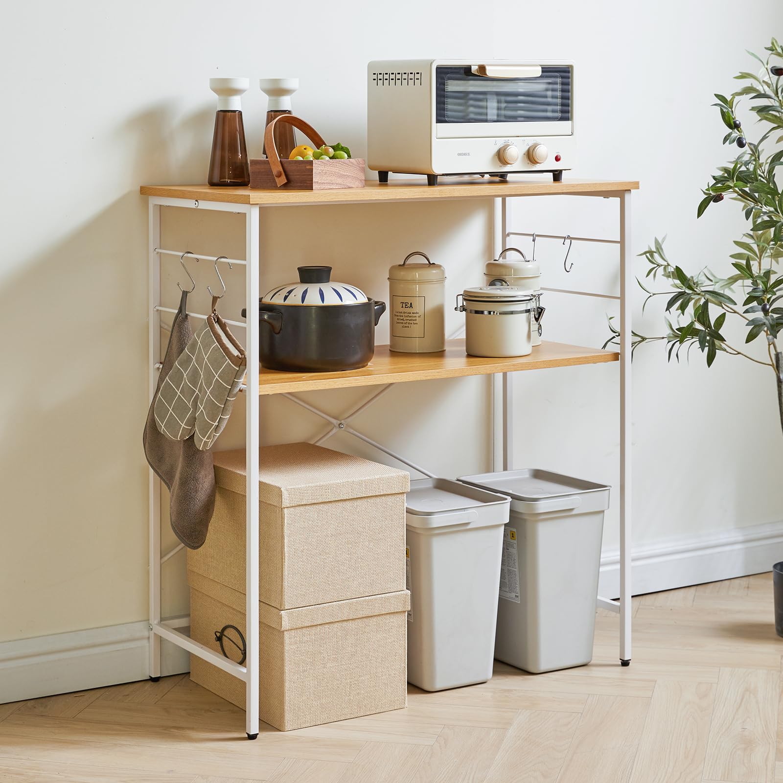 【セール】IBUYKE ゴミ箱上ラック レンジ台 キッチンラックゴミ箱上収納レンジボード 可動棚 食器棚 幅80×奥行40×高さ87.5cm オープンラック 収納ラック キッチン 炊飯器 作業台 簡単組立 ナチュラル JPTMJ027N | GIGATERA