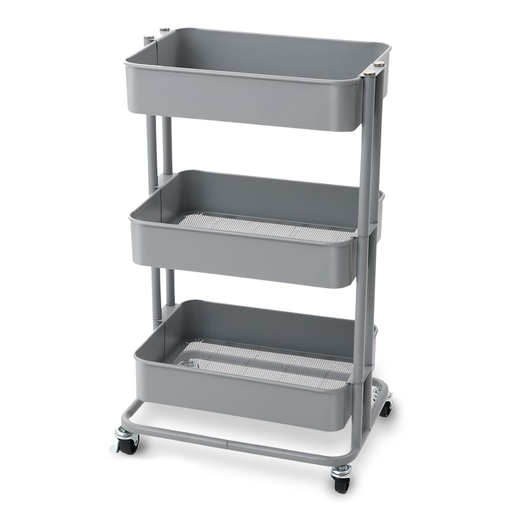 【取り出しやすくリニューアル! 】アイリスプラザ キッチンワゴン ワゴン 調味料ラック バスケットラック 収納ワゴン 3段 キャスター付 幅44.5×奥行35×高さ78cm グレー KW-L001