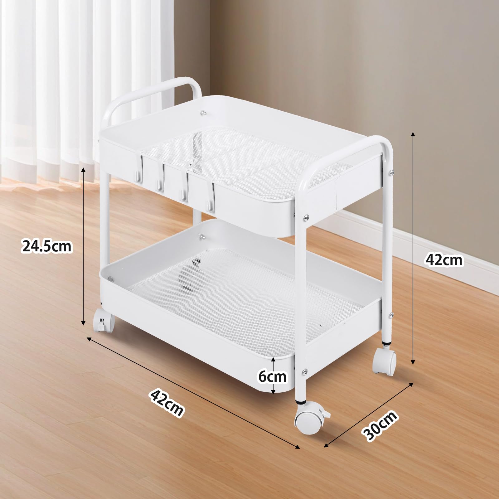 【大容量】また、通気性の良い底板には、地面にメッシュが付いているため、湿気の多い環境でも簡単に清掃できます。また、収納カートのバスケットは全金属製で防水・防食性を確保しながらも、可愛くてスタイリッシュな見た目を醸し出しています