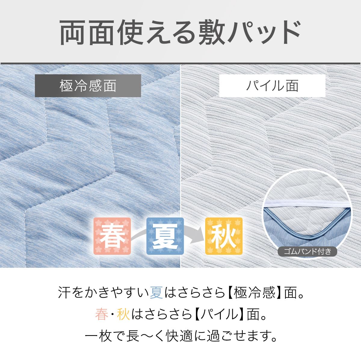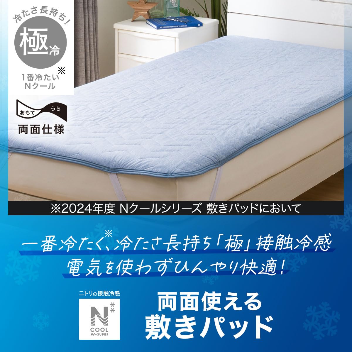 ニトリ(NITORI) 両面使える ゴムバンド付き 敷パッド シングル NクールWSP S DBL S2403 ブルー 7567051