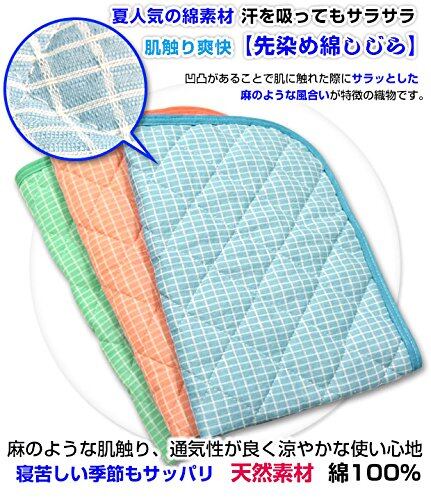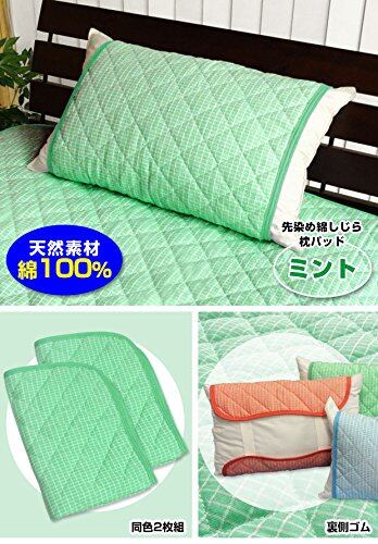 【数量限】枕パッド 43×63cm用 綿100% 先染め 綿しじら 洗える 凹凸が爽やか ゴムバンド付き (ミント(グリーン系))