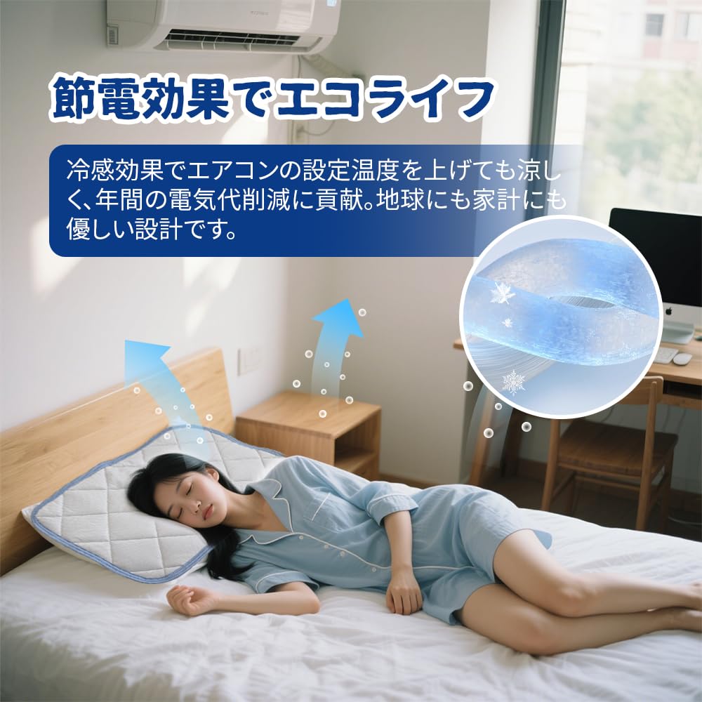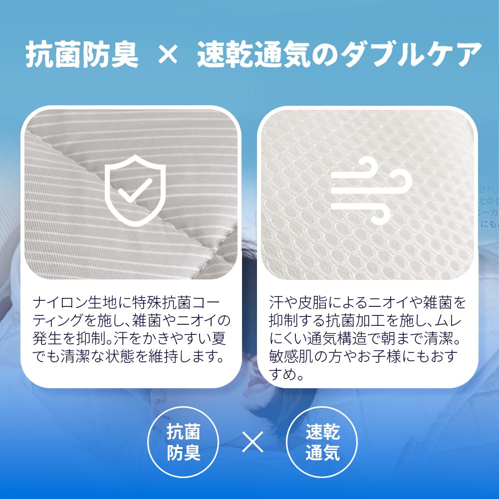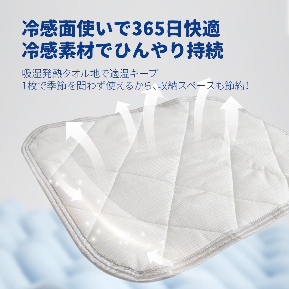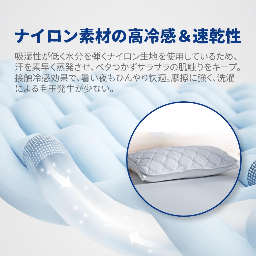【接触冷感で快適な睡眠】特殊冷感素材を使用し、肌に触れた瞬間からひんやりとした涼しさを長時間持続。夏の暑い夜も快適に眠れます。