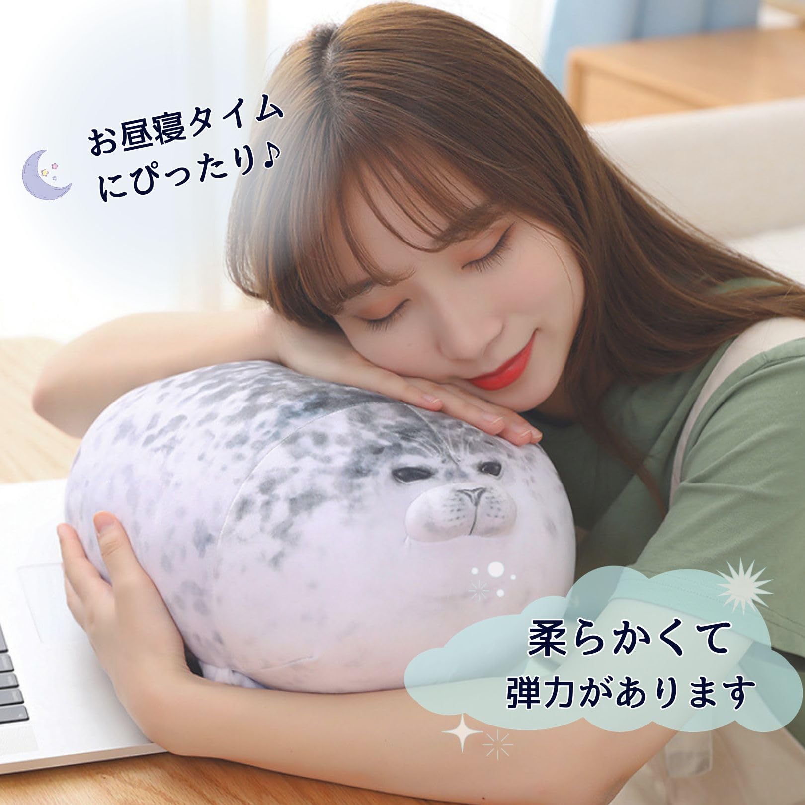 EU SOU アザラシ 抱き枕 クッション ぬいぐるみ リアル 動物 ふわふわ もちもち 添い寝枕 昼寝枕 (40cm, グレー)