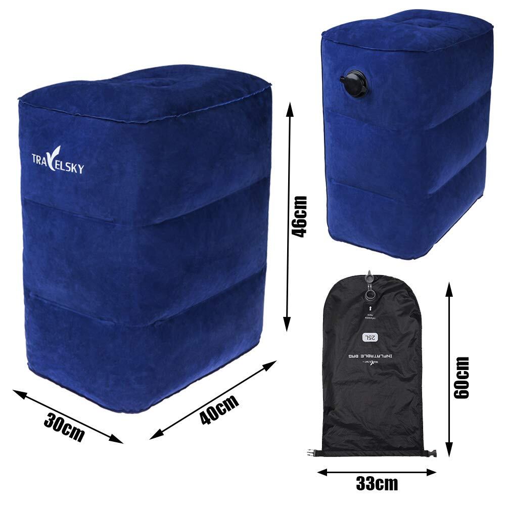【セール】フットレスト 足置き オットマン エアー クッション 携帯しやすい フラット 足枕 飛行機 車 オフィス エコノミー症候群対策 旅行用便利グッズ 収納袋付き ManKn