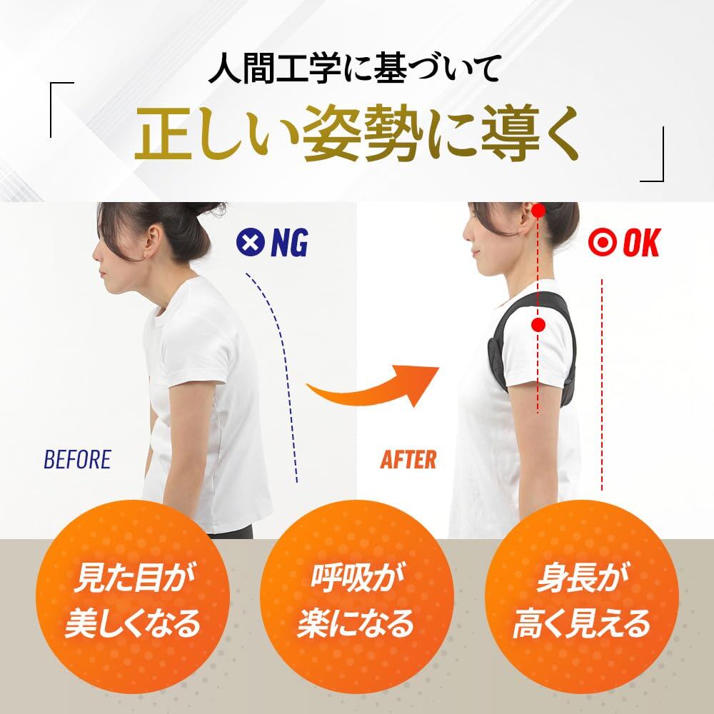 ?【脱、ねこ背で解決!】猫背や巻き肩でお悩みの方に肩甲骨を引き寄せて胸を張った美しい姿勢をサポート!デスクワークやパソコン・スマホの利用で姿勢の歪みが気になる方へ!