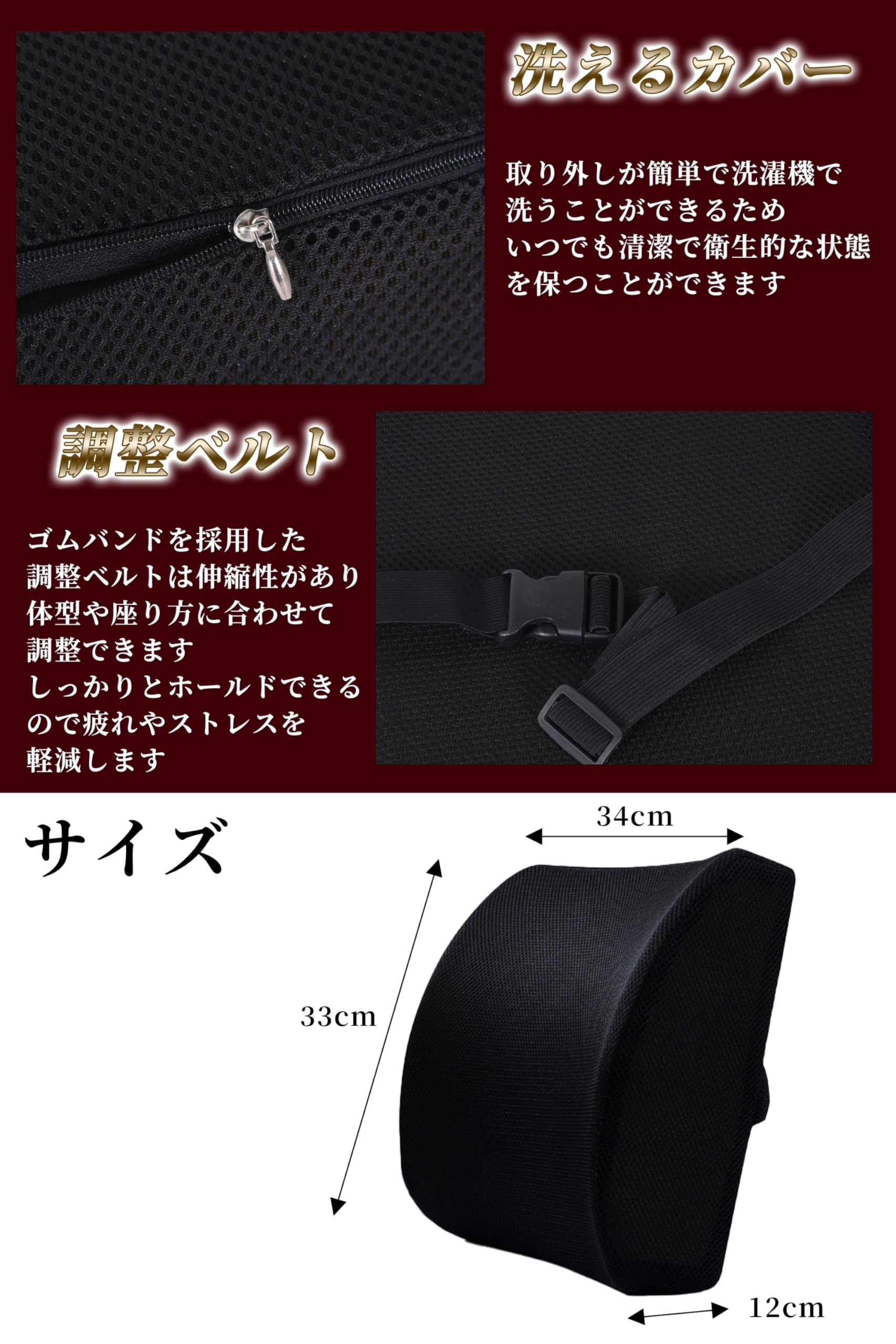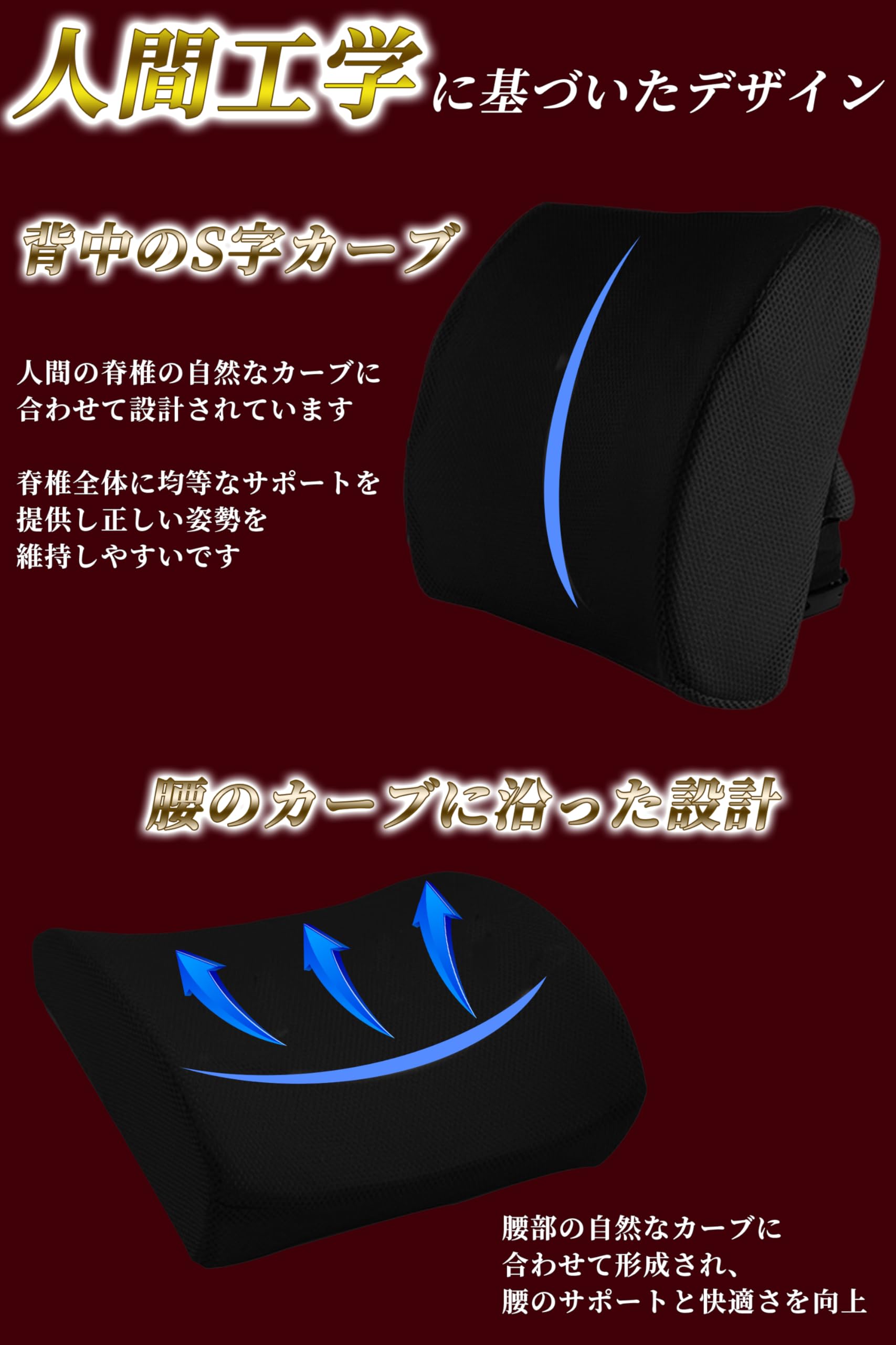 【整体師も推奨する腰サポートクッション】背もたれに寄りかかる作業時に腰や背中の負担を軽減するために設計されています。