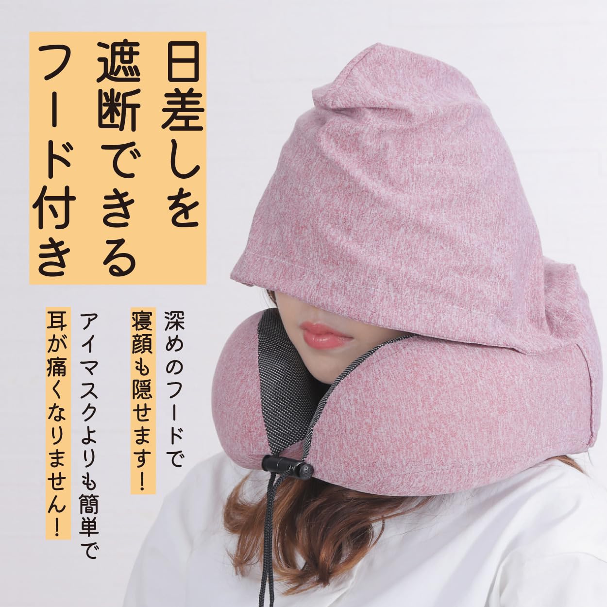 ?【移動中もプライベート空間を確保】 光や視線を遮る便利なフード付き。飛行機や新幹線、バスで「眠りたいけど眩しい」「話しかけられたくない」といったお悩みを解消します。付属の耳栓で周囲の騒音もカットし、ぐっすり眠れるようサポート致します。