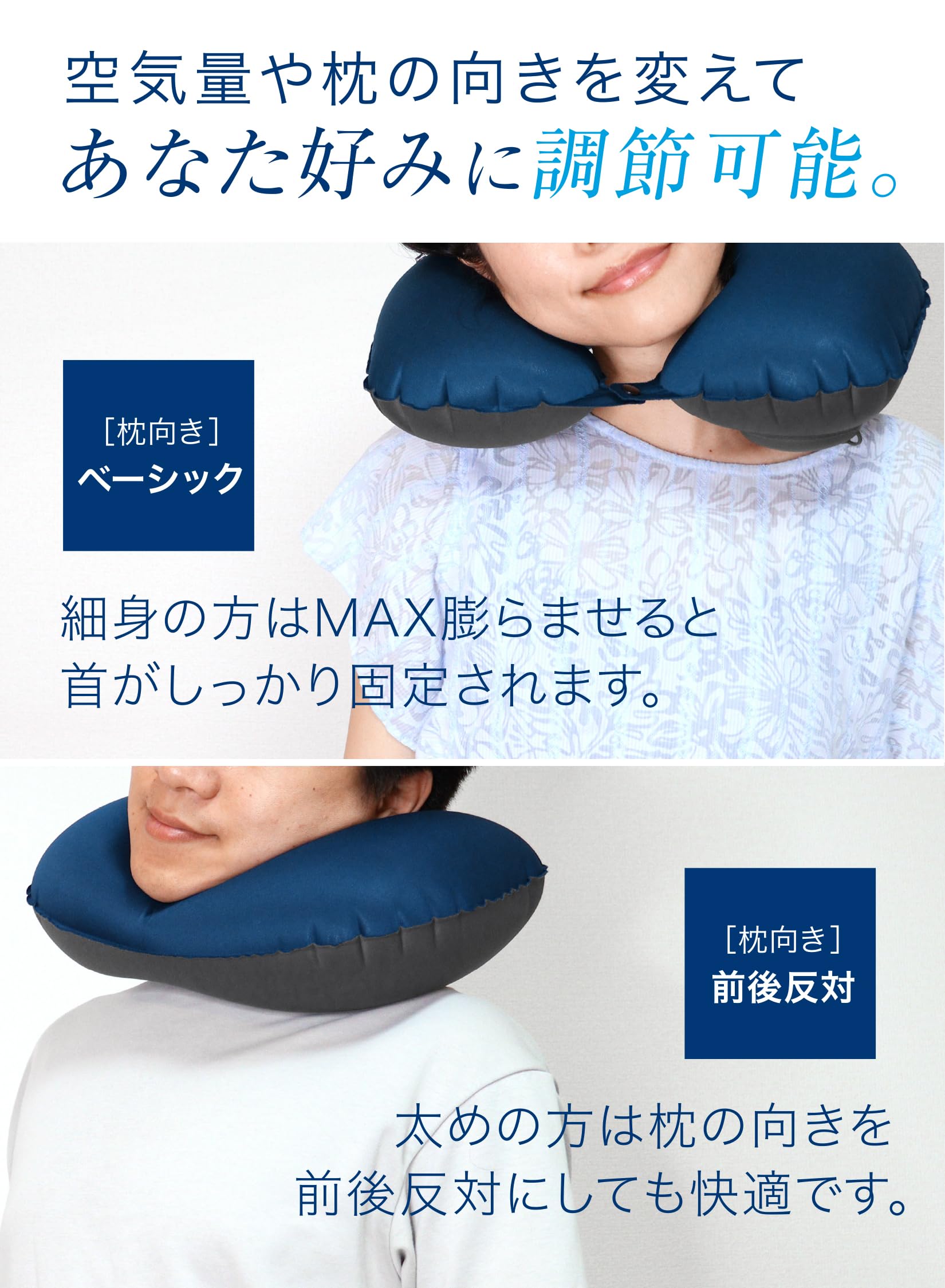 特徴 インフレータブル, フィット感UP!ボタン付き, 片手サイズに!収納袋付属, 蒸れない快適な生地, 飛行機、旅行の快適グッズ!