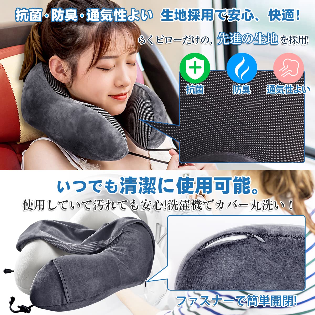 ?【お手入れ簡単】表地カバーには柔らかく肌に優しいマイクロビロード生地を使用、防臭・抗菌・防ダニ加工を施してあるので、衛生面にも配慮しています。カバーはファスナー付きですぐに外せるので、汚れたら丸洗いが可能。
