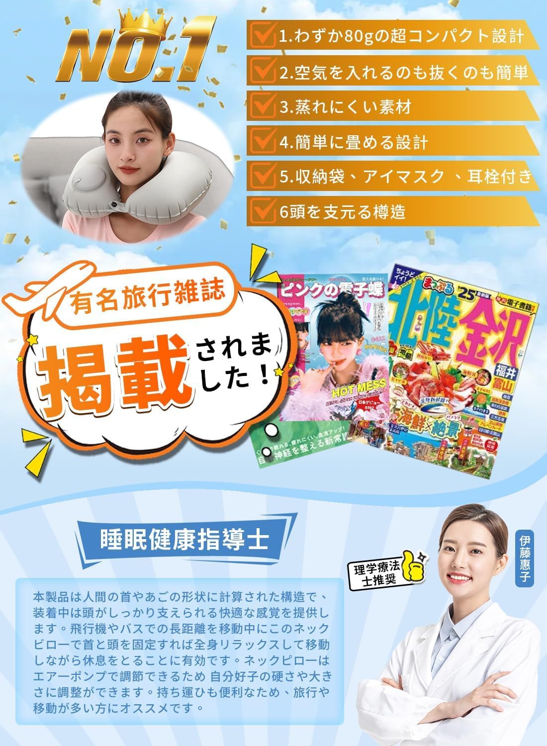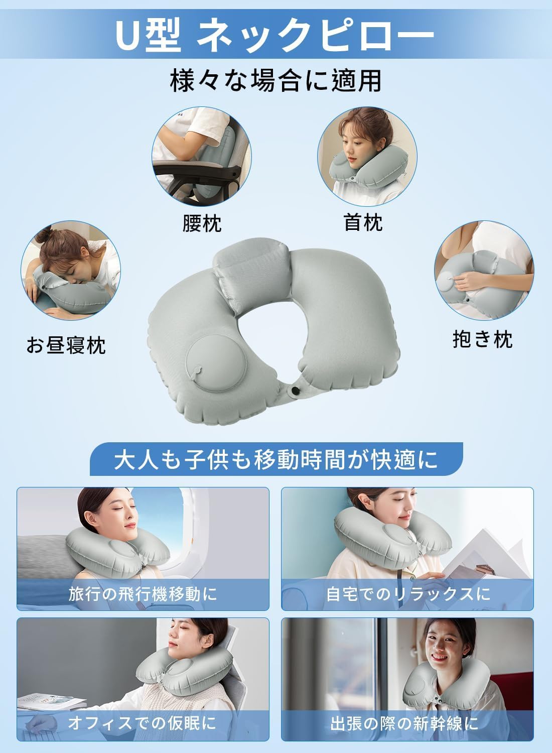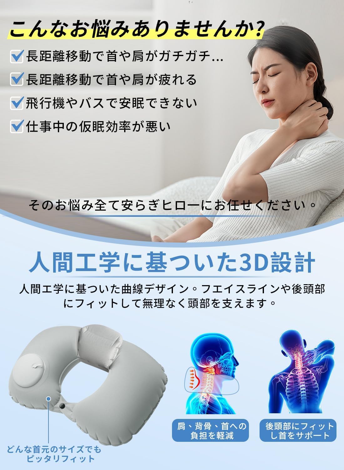 ??????【あらゆる場面で活躍】旅行や出張などの飛行機、電車、車移動などに。デスクワーク中の首預け場に。車中泊やお昼寝などの睡眠時などには携帯枕としても大活躍!どこにでも持ち歩きたい一品です。