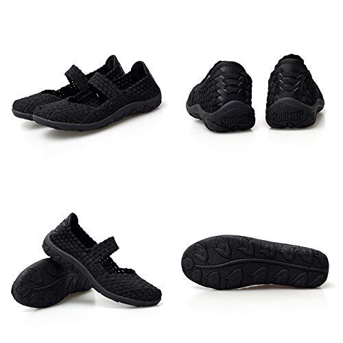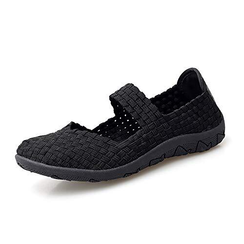 [Sunlane] レディース スリッポン スニーカー モカシン 編み込み ウーブン デッキシューズ ヴァンプ ウーブンシューズ フラット 2WAY かかと踏める パンプス アクティブシューズ サボ カジュアル ストレッチ 通気 軽量 履きやすい ブラック 23.5cm