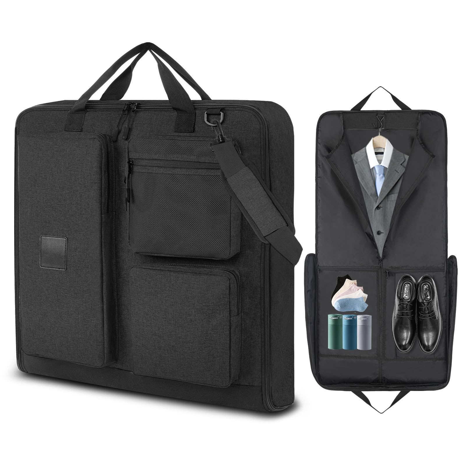 [lovvento] ガーメントバッグ スーツバッグ メンズ 大容量 スーツ3着対応 シューズ 靴収納 3way 手提げ 斜め掛け キャリーオン機能 2泊3泊 撥水加工 ビジネス 出張 出勤 冠婚葬祭 ショルダーベルト付き