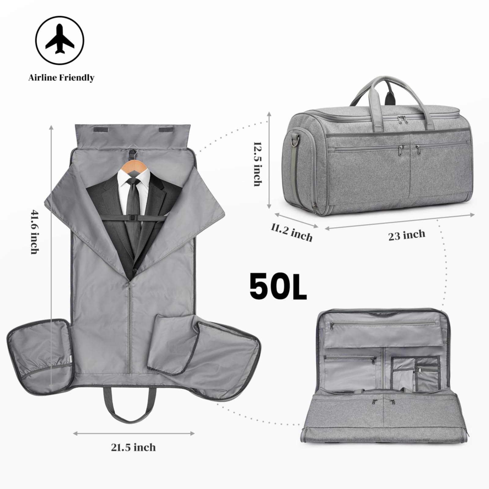 S-ZONE キャリーオン 旅行用ガーメントダッフルバッグ、 ハンギングガーメントバッグ 2-1 コンバーチブルダッフルスーツバッグ メンズ レディース
