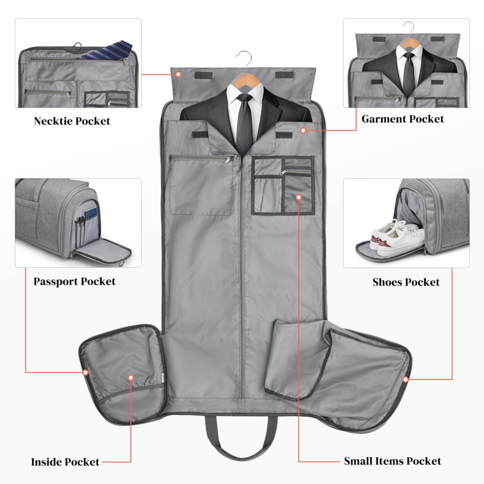 【プレミアム素材】: このコンバーチブルガーメントバッグは、高品質のオックスフォード布で作られており、防水性、耐裂性、耐衝撃性があり、スーツやドレスをよりよく保護します。YKKジッパーはより強く、破損を防ぎます。さらに、ショルダーパッド付きの人間工学に基づいたショルダーストラップも、負担を効果的に軽減します