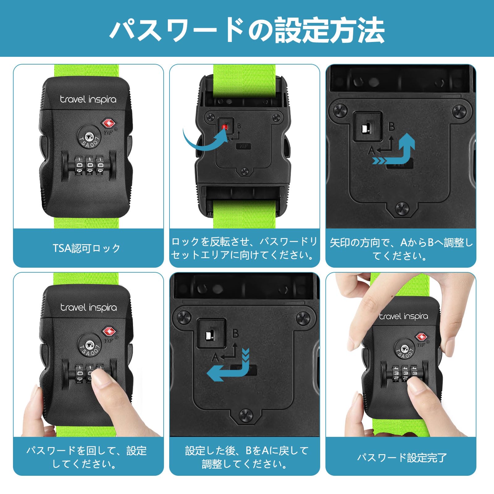 travel inspira 【TSAロック】スーツケースベルト 旅行 便利グッズ 荷締めベルト バンド 荷崩れ防止・102〜200 CM 調整可能 I字型 軽量 3桁ダイヤル式 固定ベルト スーツケースベルト 鍵付き ずり落ち防止 旅行/出張に最適 (グリーン)