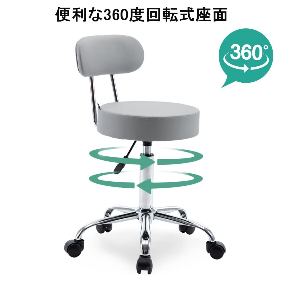 丸椅子 背もたれ付き カウンターチェア キャスター付き 昇降式 スツール 座り心地がいい 高さ調整 椅子 360°回転 診察椅子 キッチン 台所仕事 チェア グレー