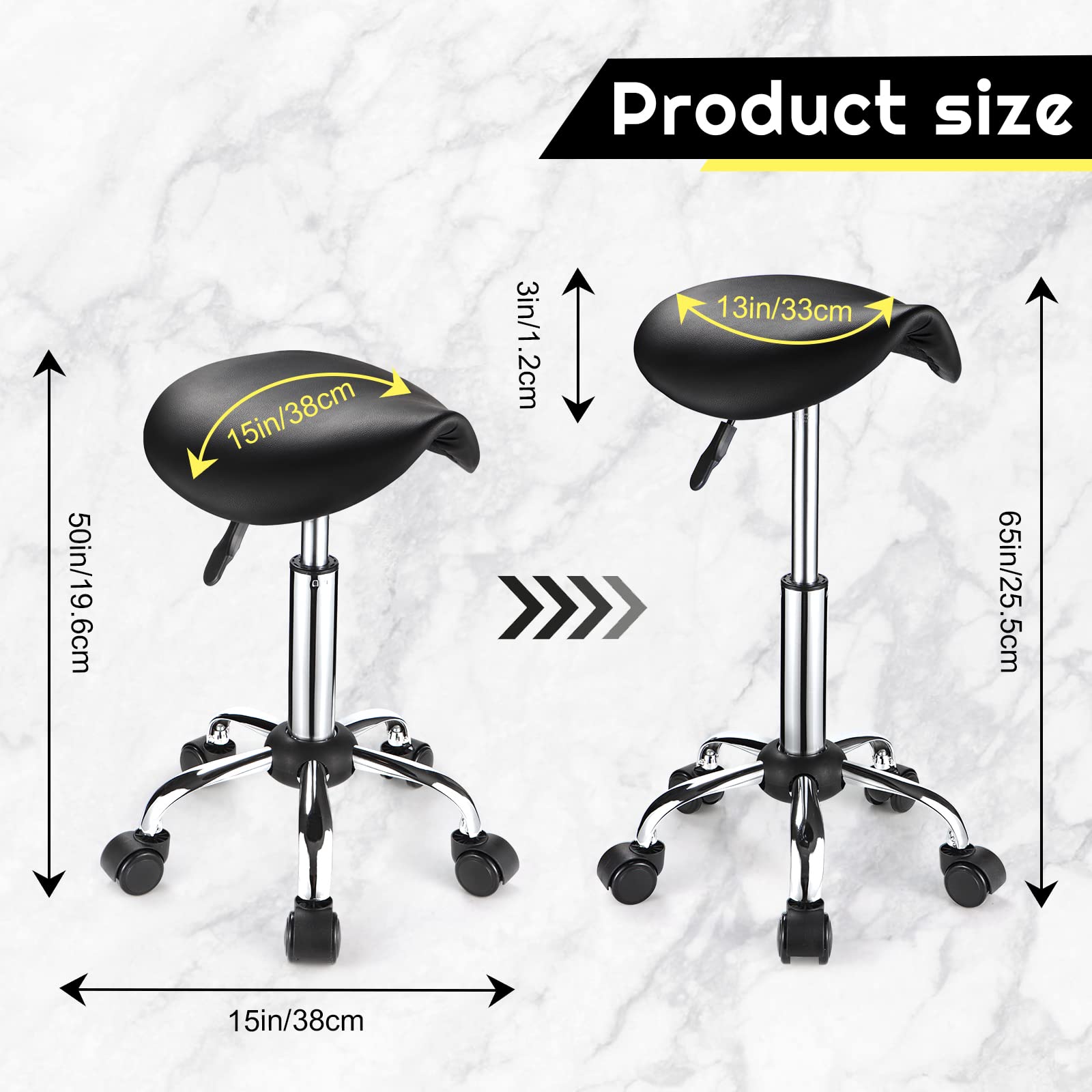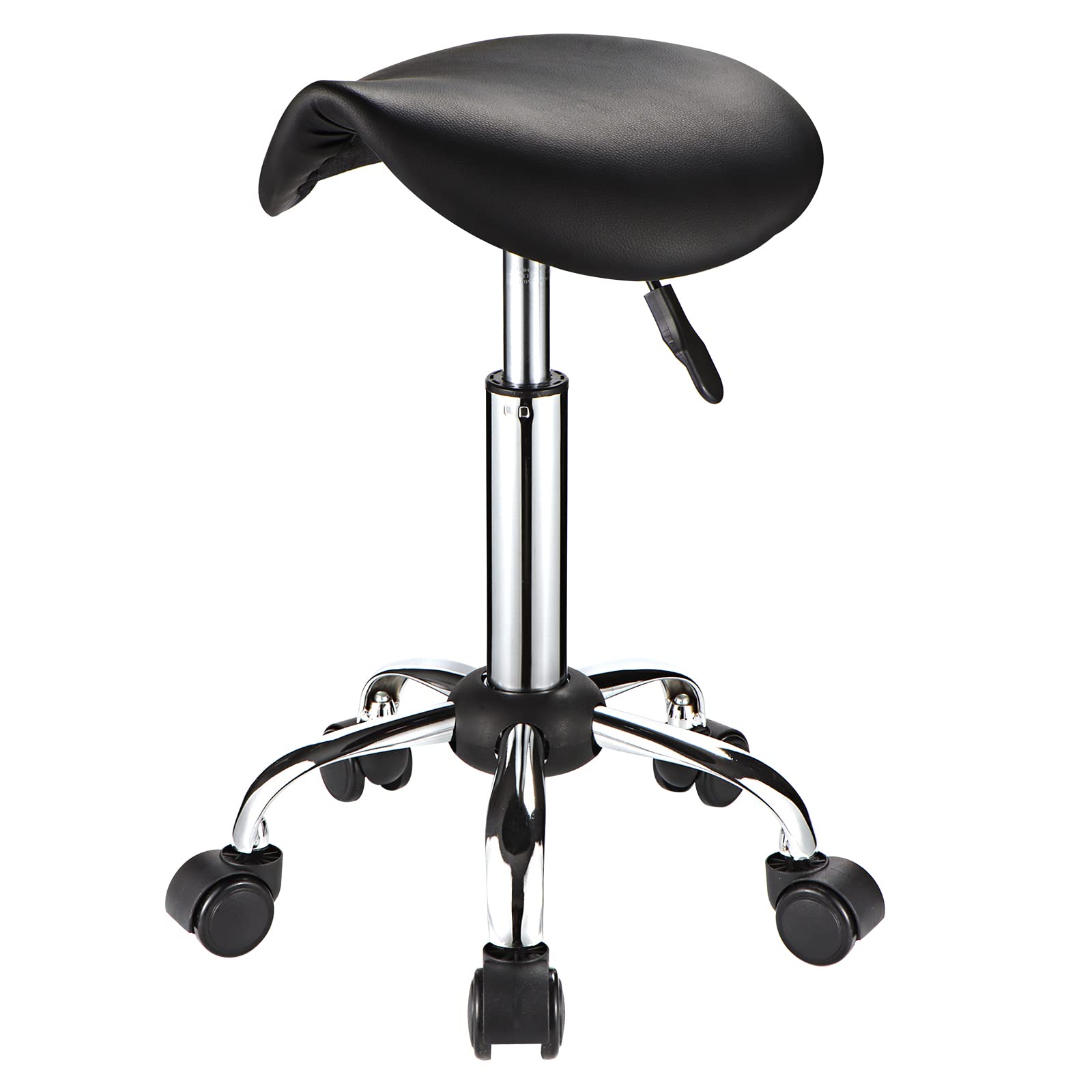 キャスター付きサドルスツール PUレザー 高さ調節可能 回転スツールチェア ブラック