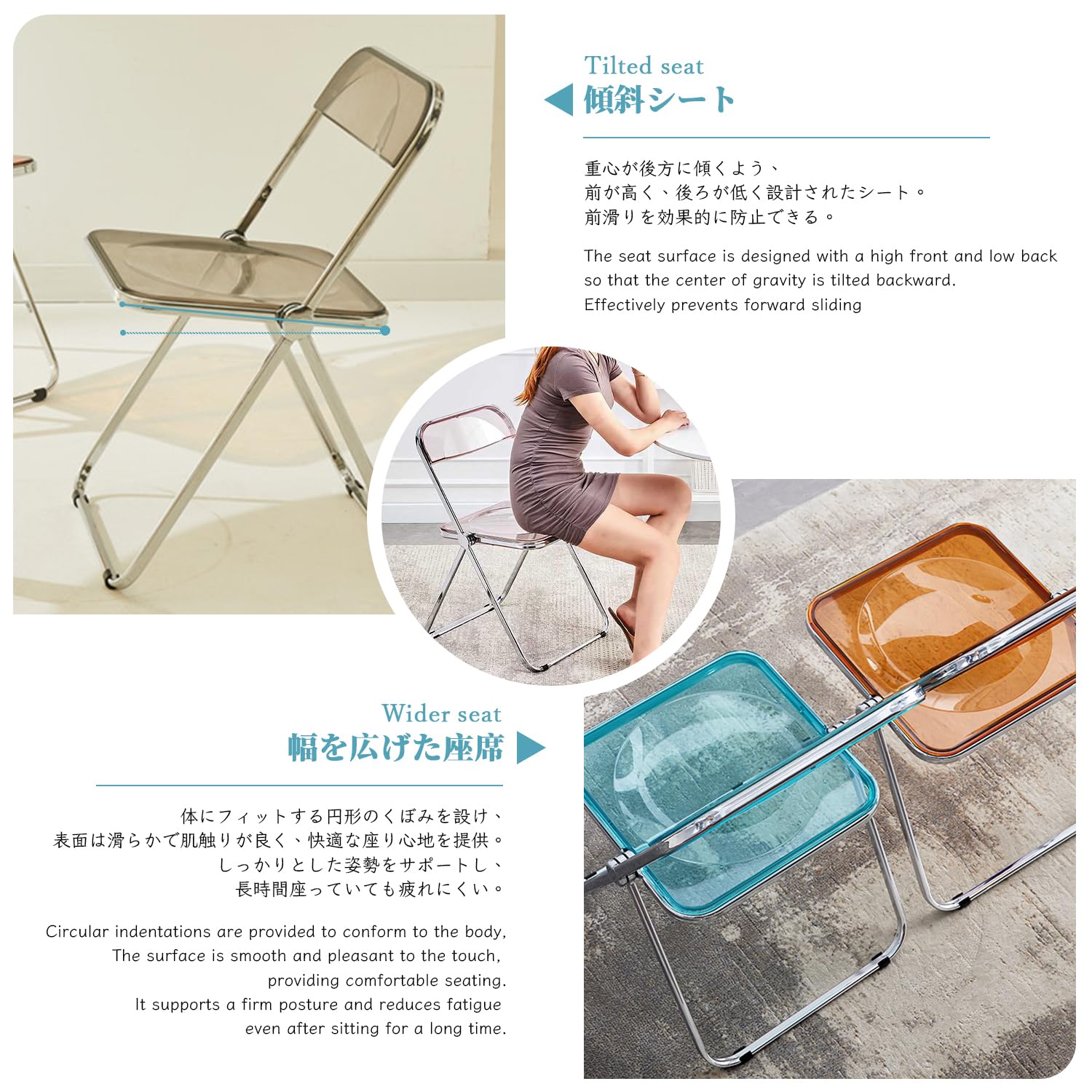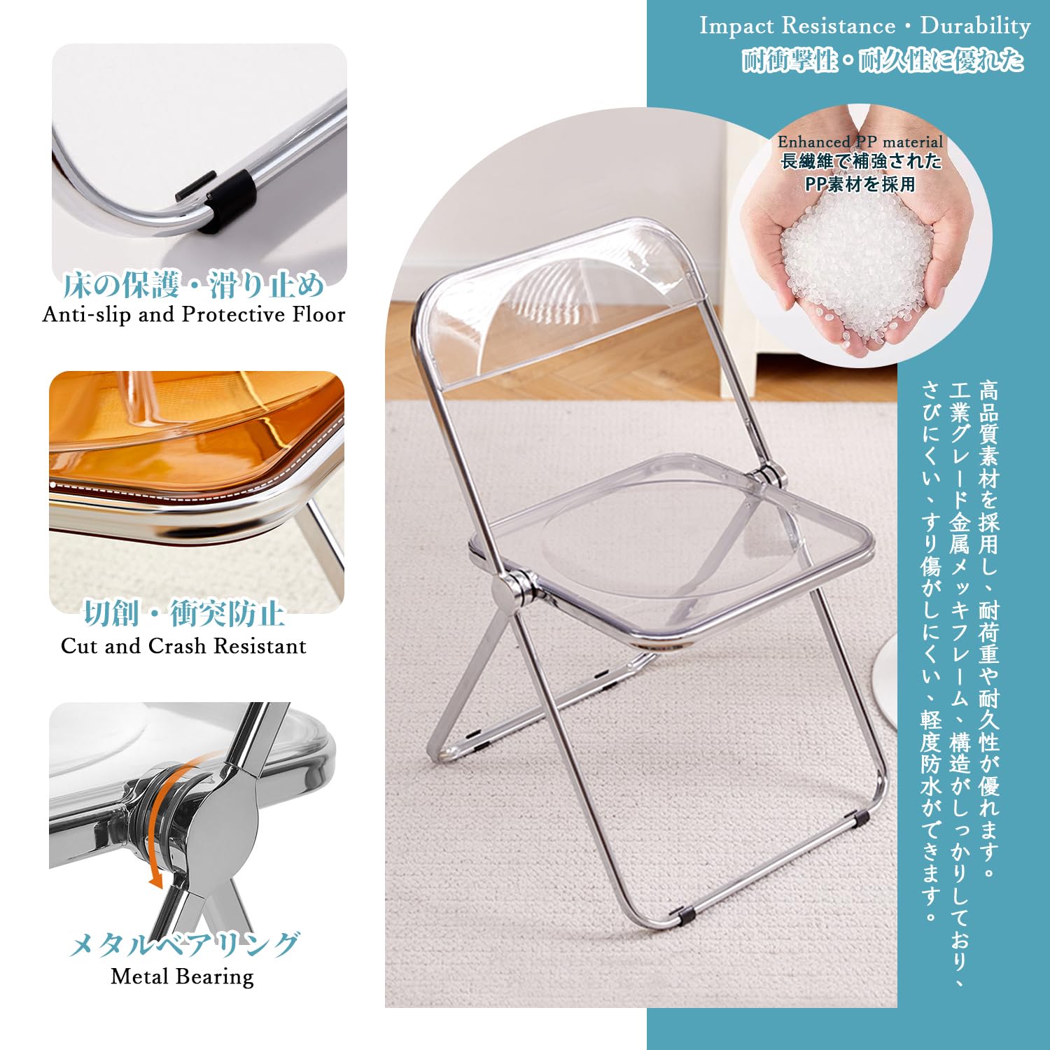 【数量限】KAIHAOWIN パイプ椅子 透明 折りたたみ 椅子 クリア 折り畳み イス 背もたれ おしゃれ フォールディングチェア スタッキング 会議椅子 ミーティングチェア ダイニングチェア オフィスチェア デスクチェア 北欧 可愛い シンプル 省スペース(クリア)