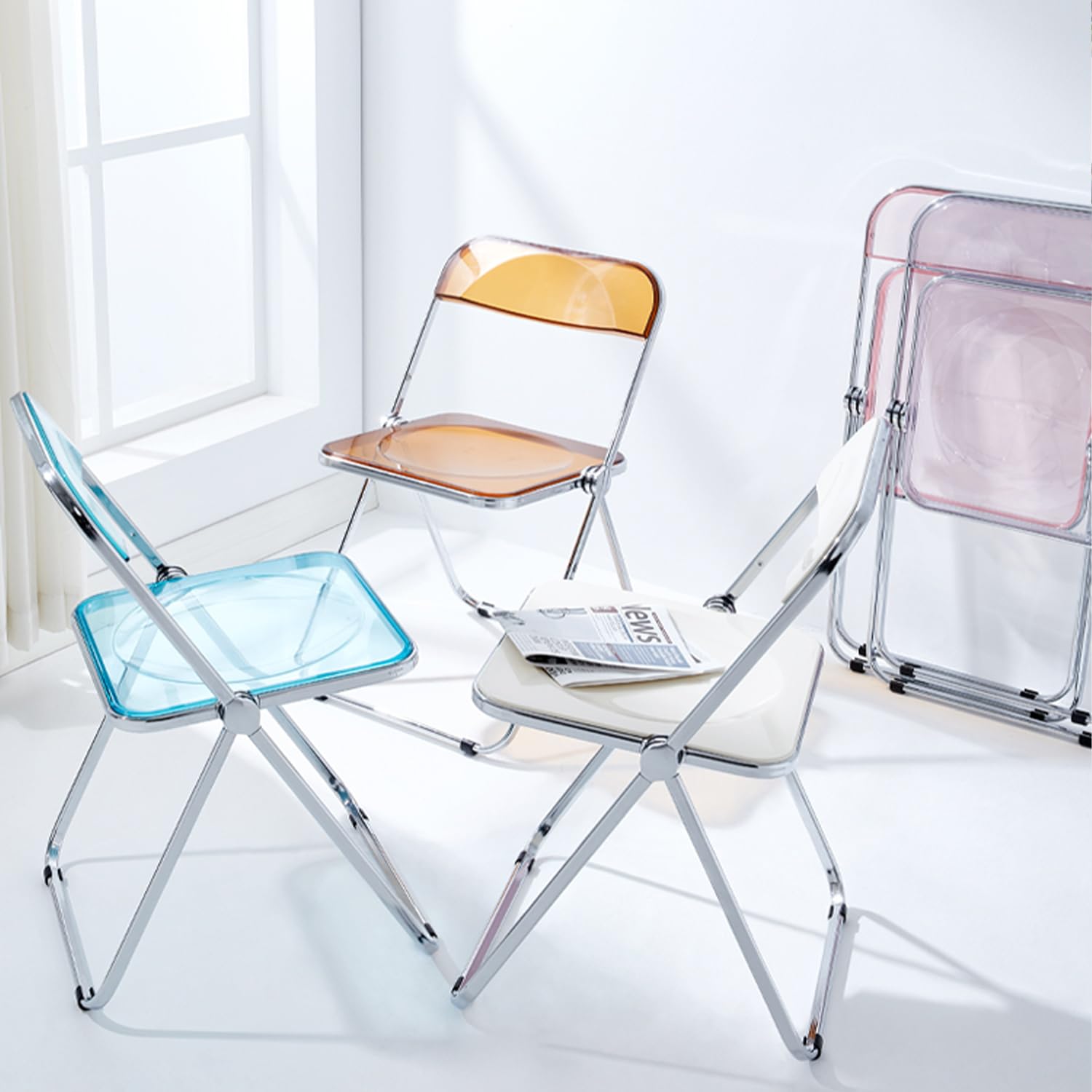 KAIHAOWIN パイプ椅子 透明 折りたたみ 椅子 クリア 折り畳み イス 背もたれ おしゃれ フォールディングチェア スタッキング 会議椅子 ミーティングチェア ダイニングチェア オフィスチェア デスクチェア 北欧 可愛い シンプル 省スペース(クリア)